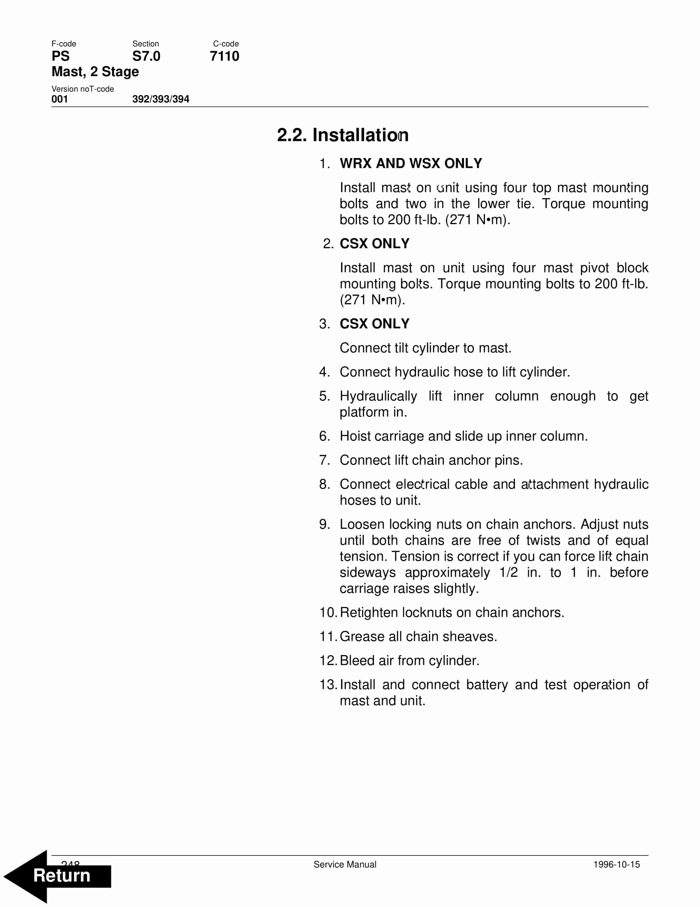 - 49.3. Two Stage Mast Lift Cylinder Repair