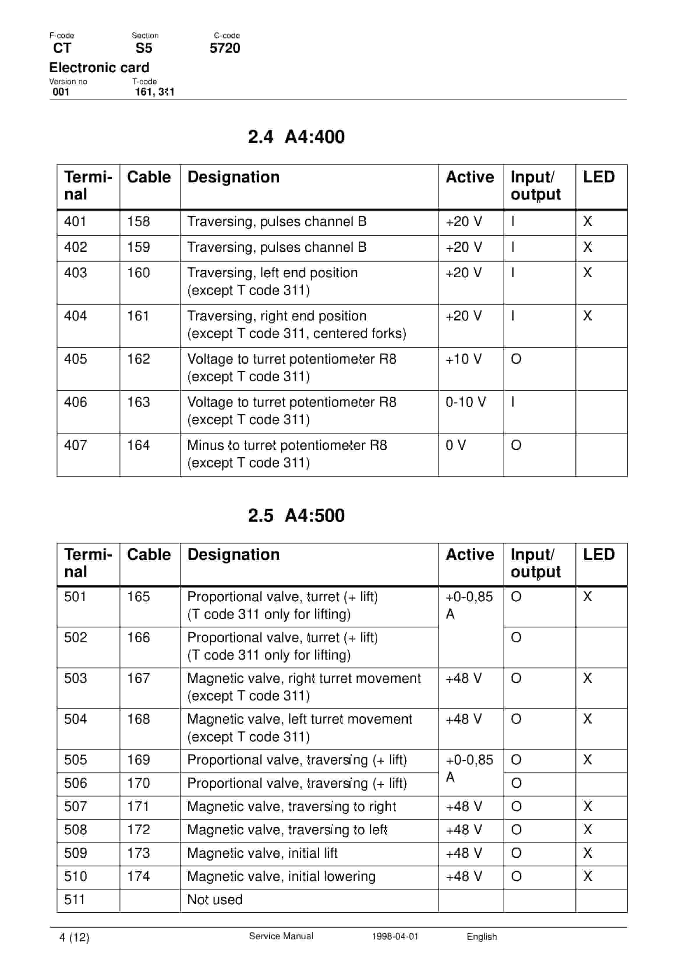 - 51.7. A4 board adjustments, T code 311