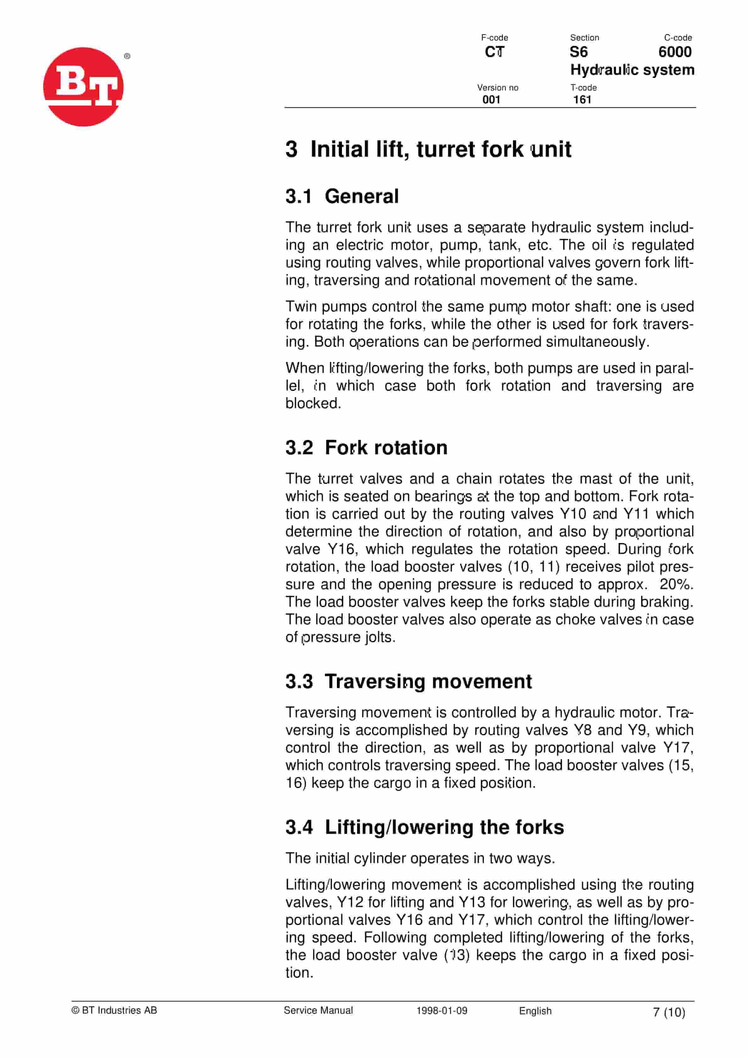 - 52.5. Initial lift, turret fork unit