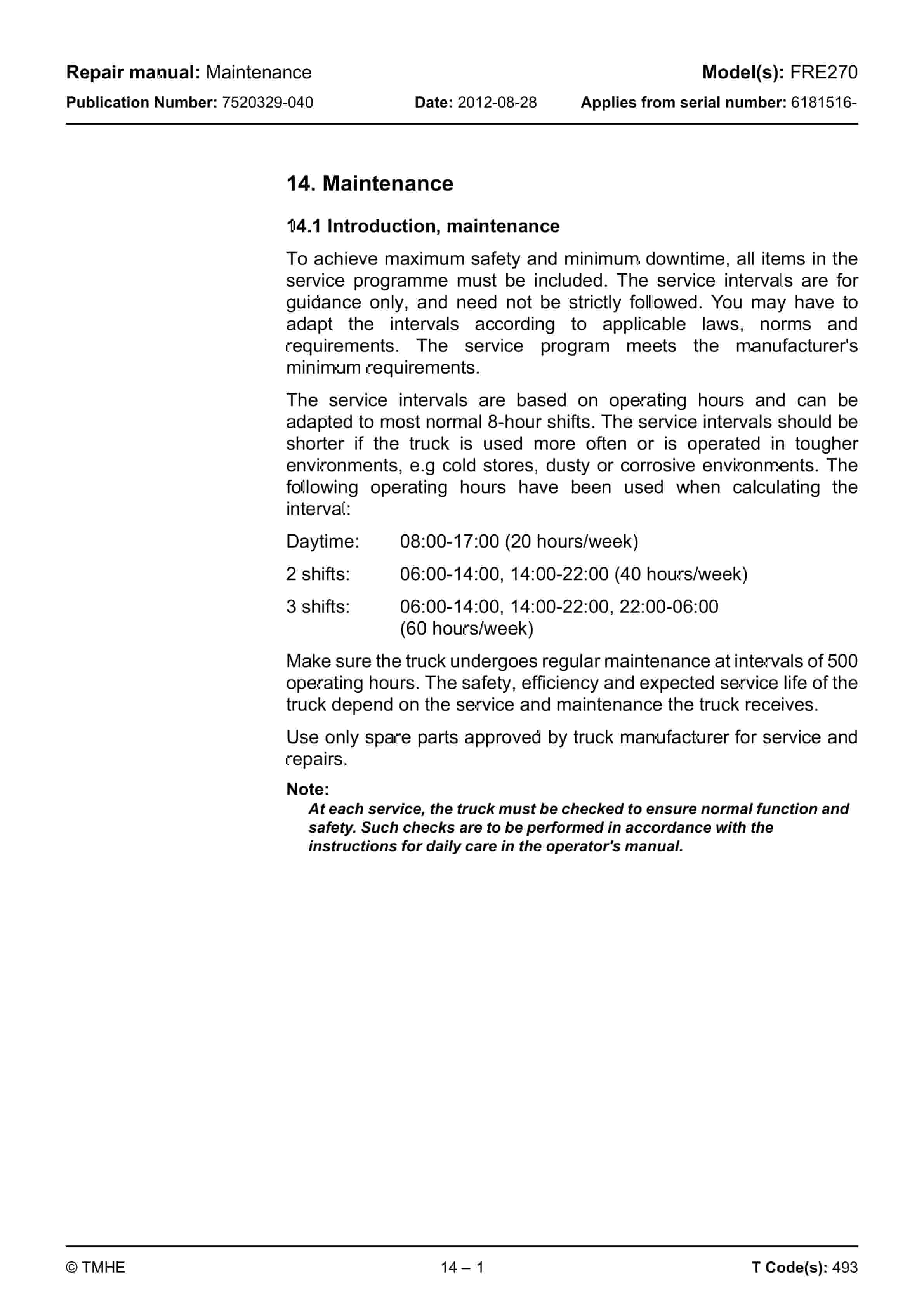 BT FRE270 Repair Manual 7520329-040