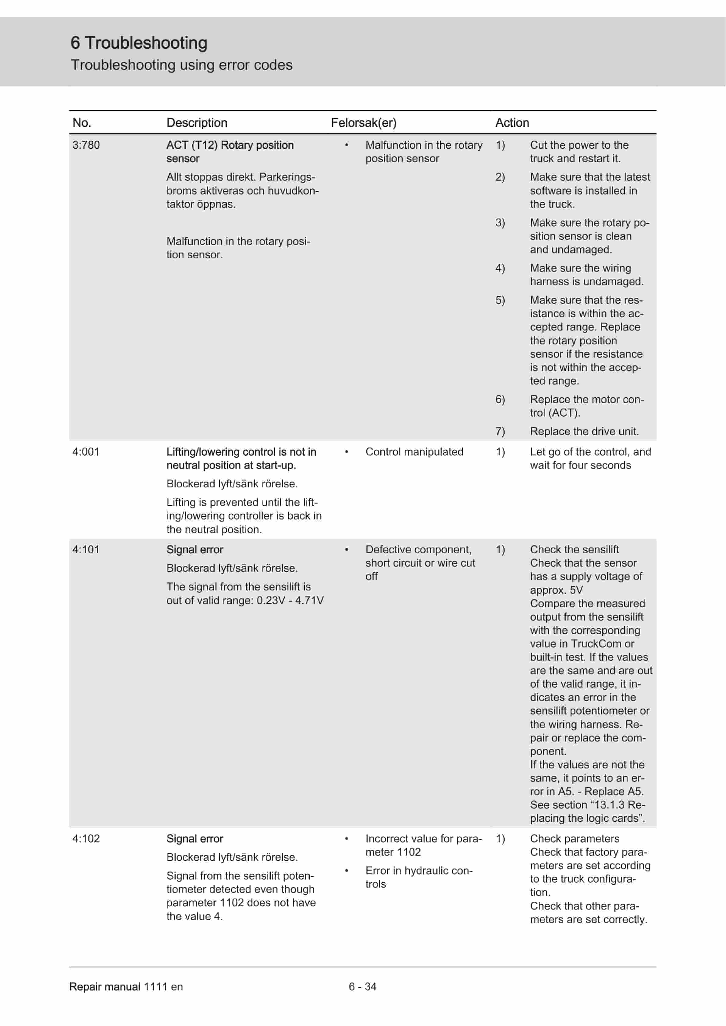 - 6.3. Troubleshooting using error codes