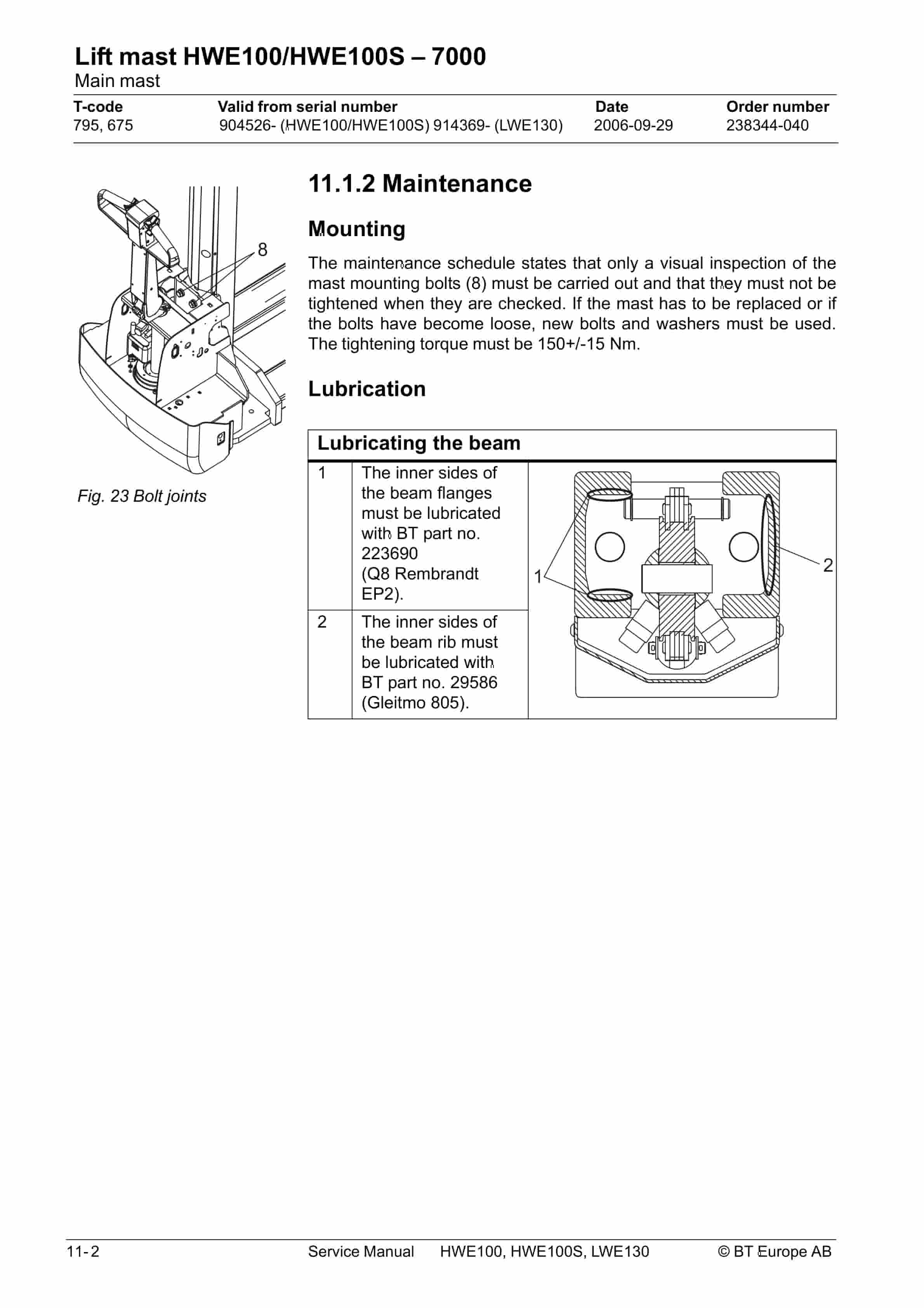 BT HWE100, HWE100S, LWE130 Service Manual 238344-040