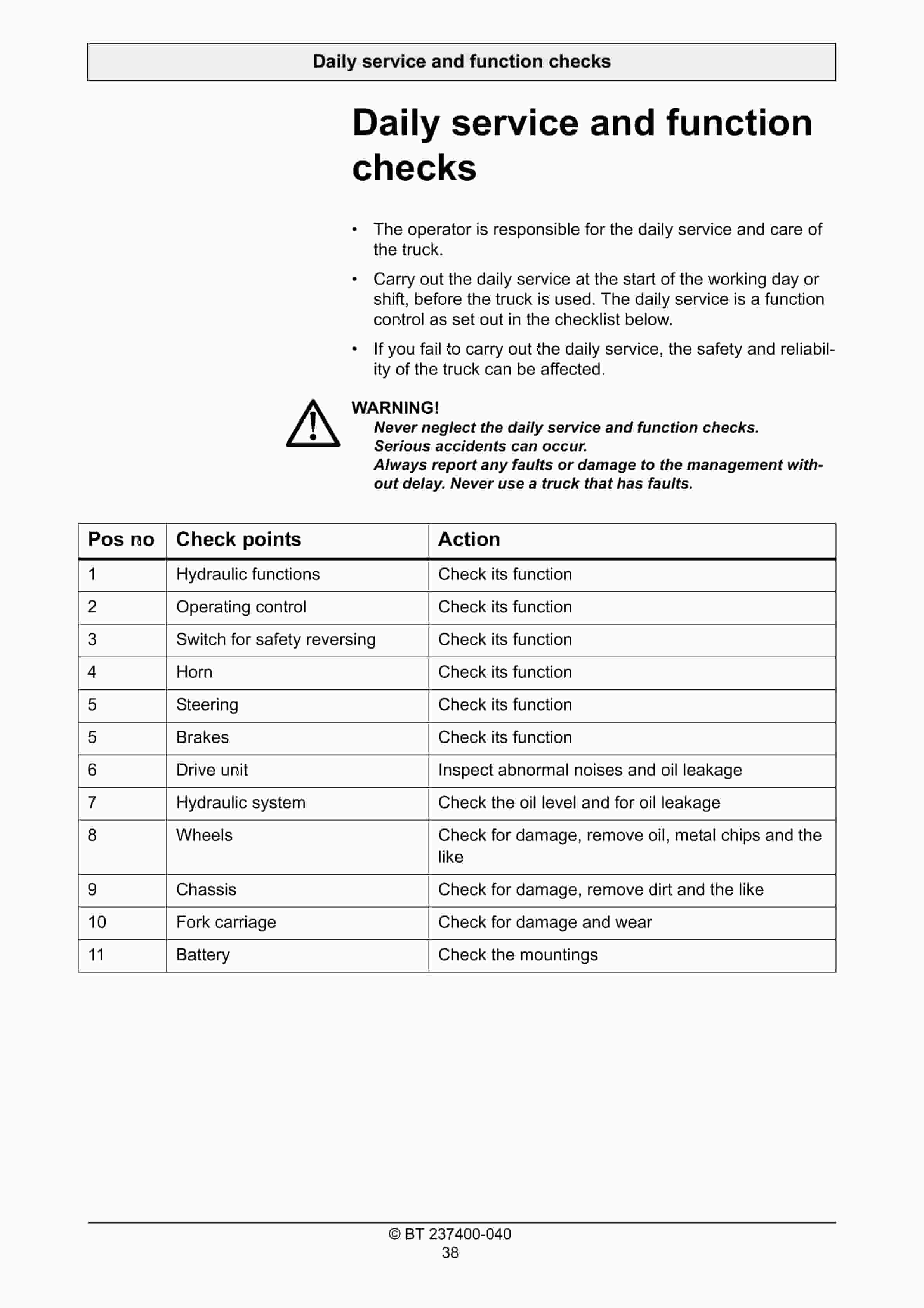 - 10. Daily service and function checks