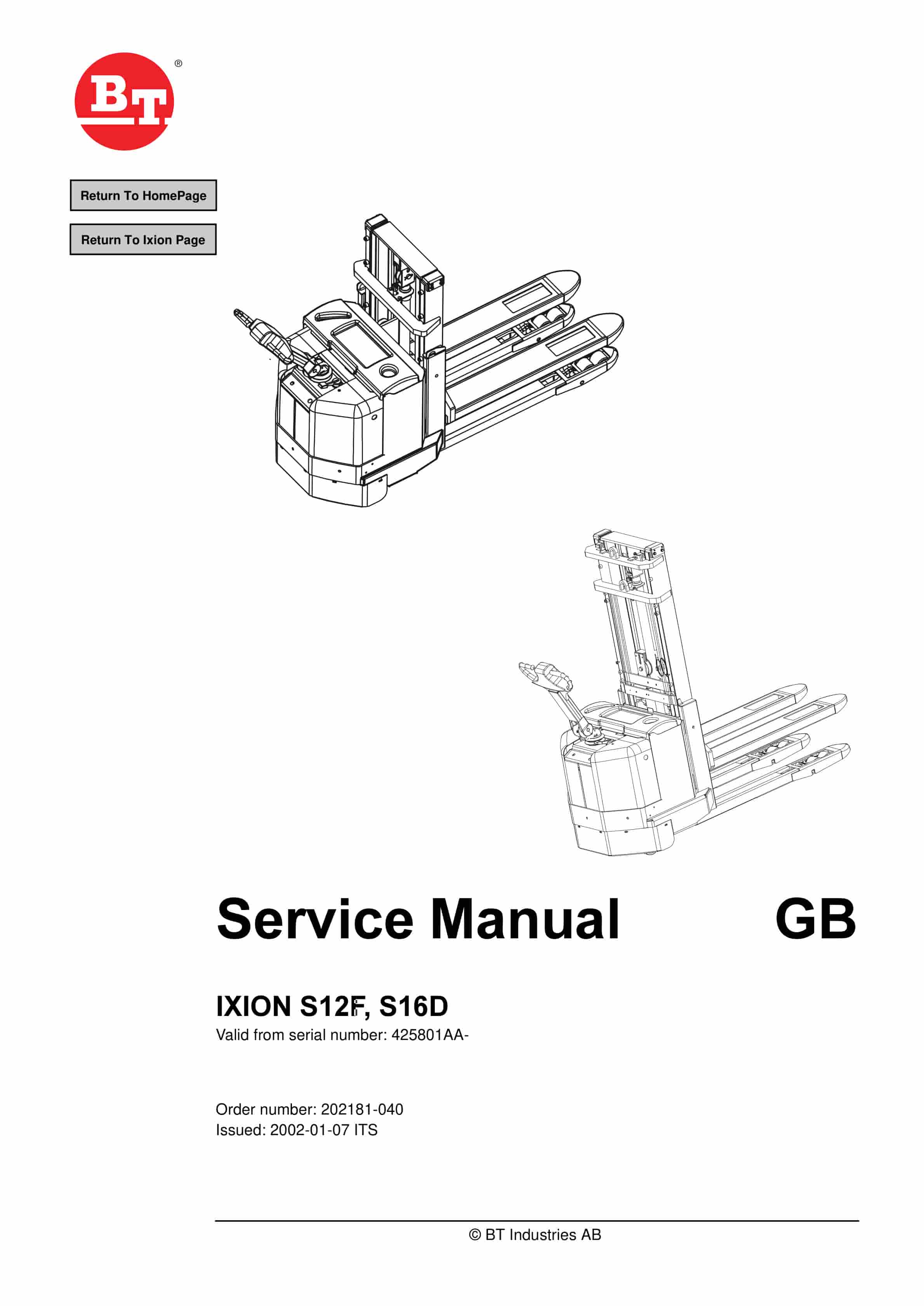 BT IXION S 12F, S 16D Service Manual 202181-040