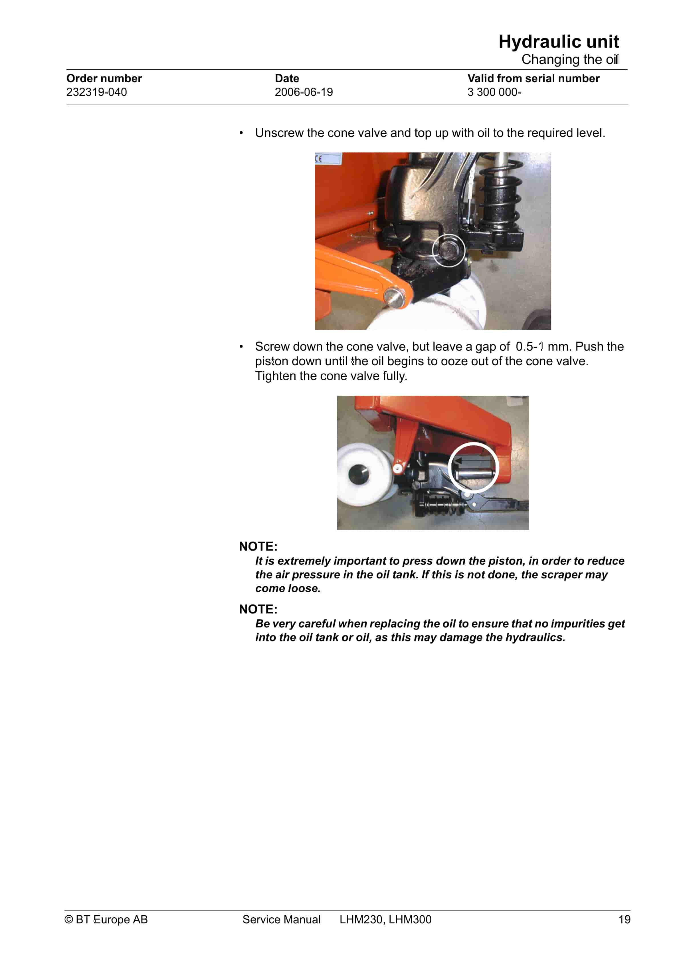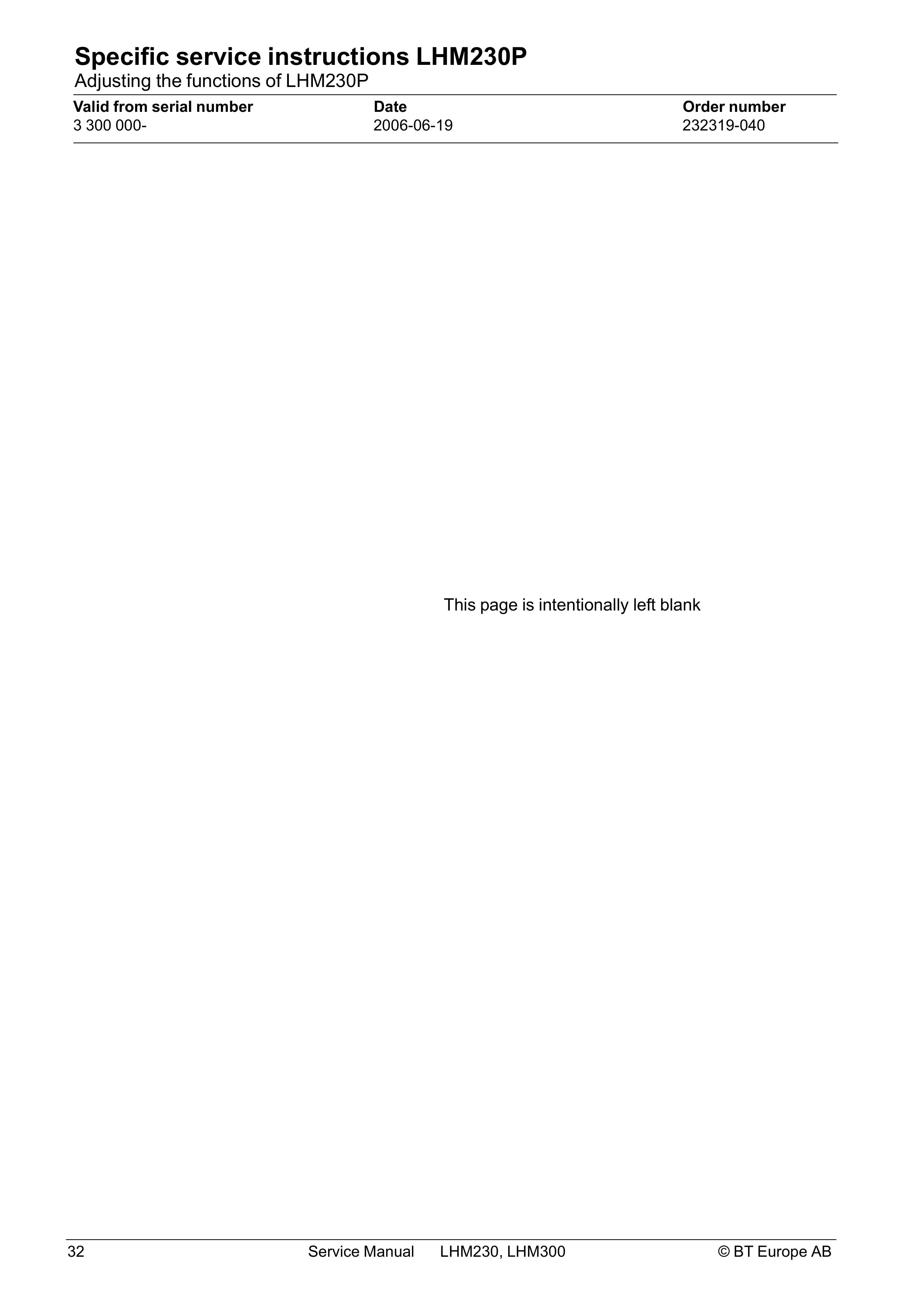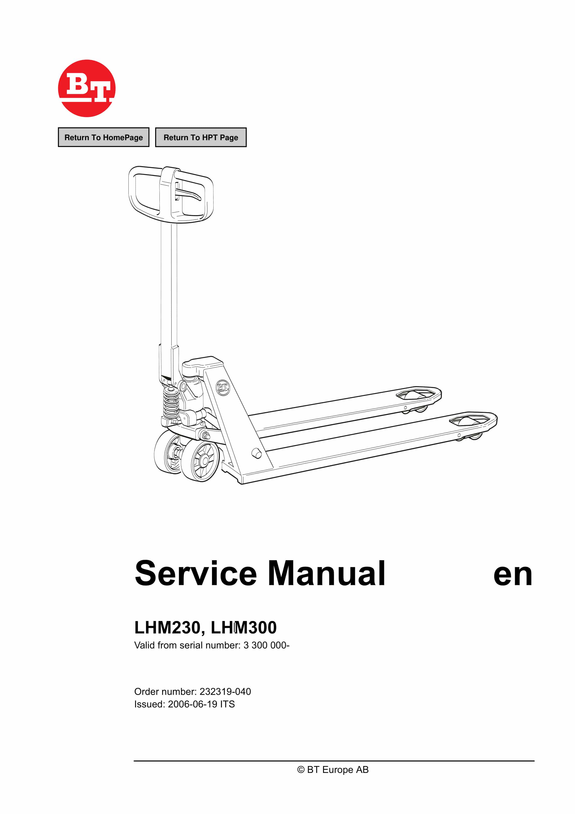 BT HL10 STD, HL10 I, HL10 X, HLE10 STD, HLE10 I, HLE10 X Operator And Service Manual 214438-003