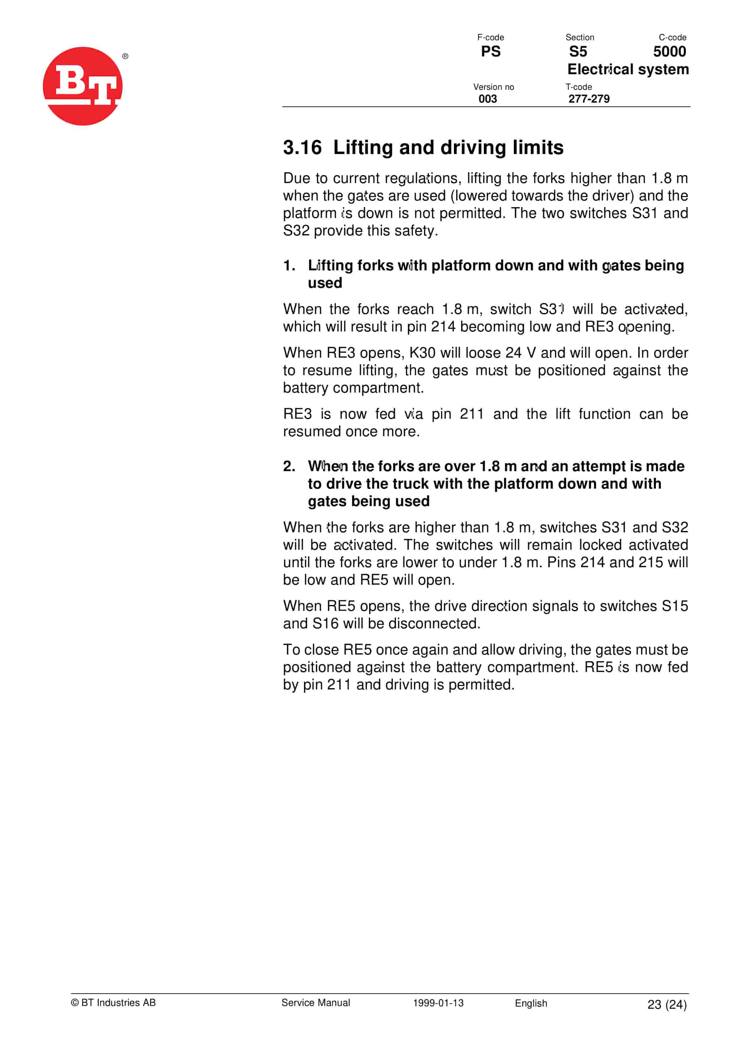 BT HL10 STD, HL10 I, HL10 X, HLE10 STD, HLE10 I, HLE10 X Operator And Service Manual 214438-003