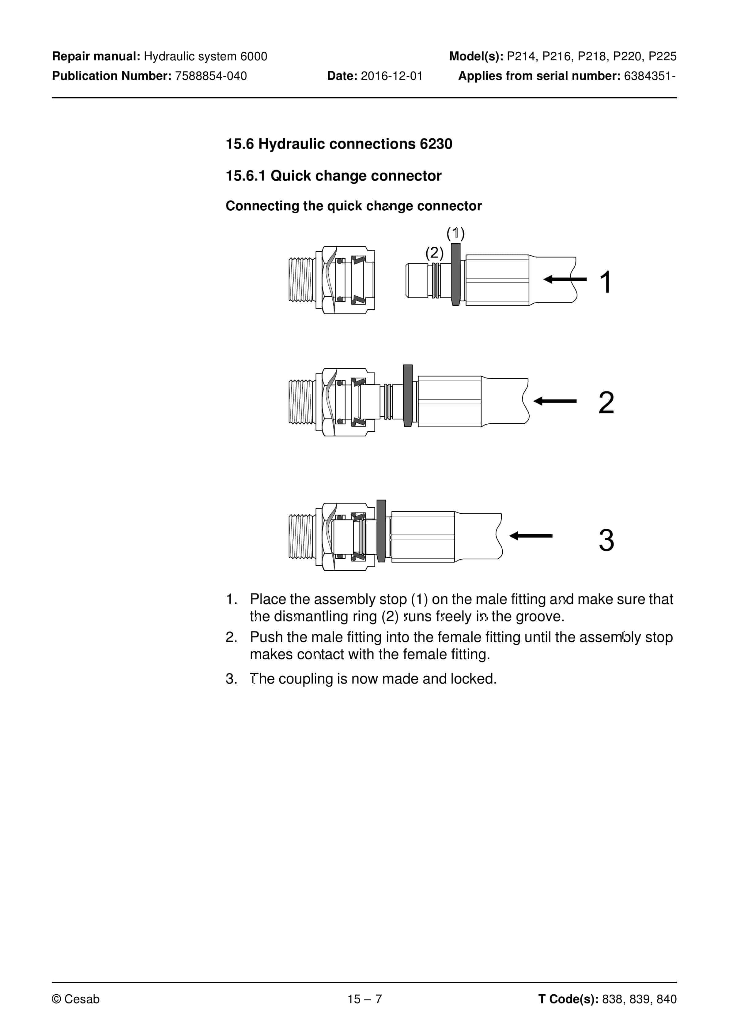 - 15.6. Hydraulic connections 6230