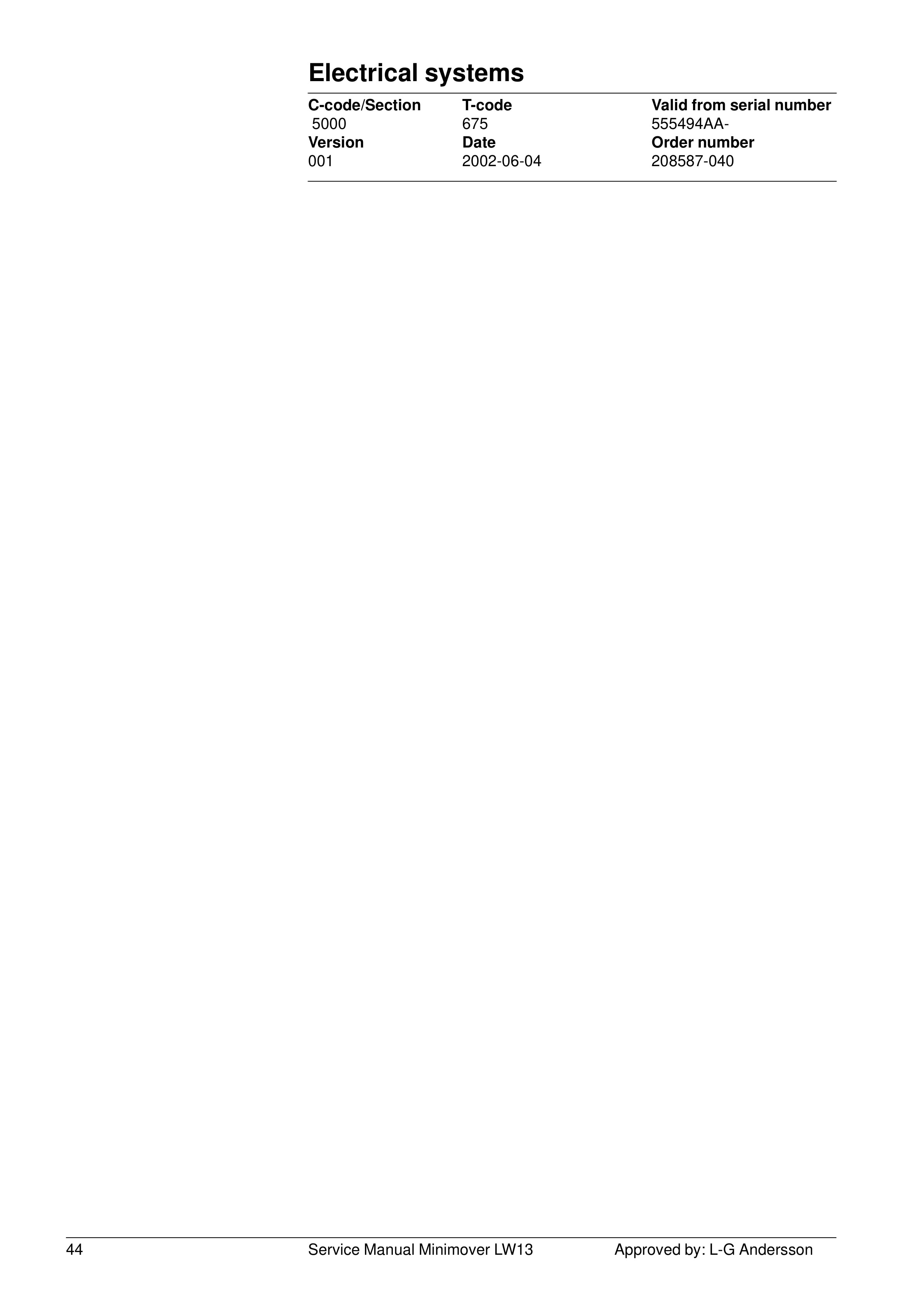 BT Minimover LW13 Service Manual 208587-040