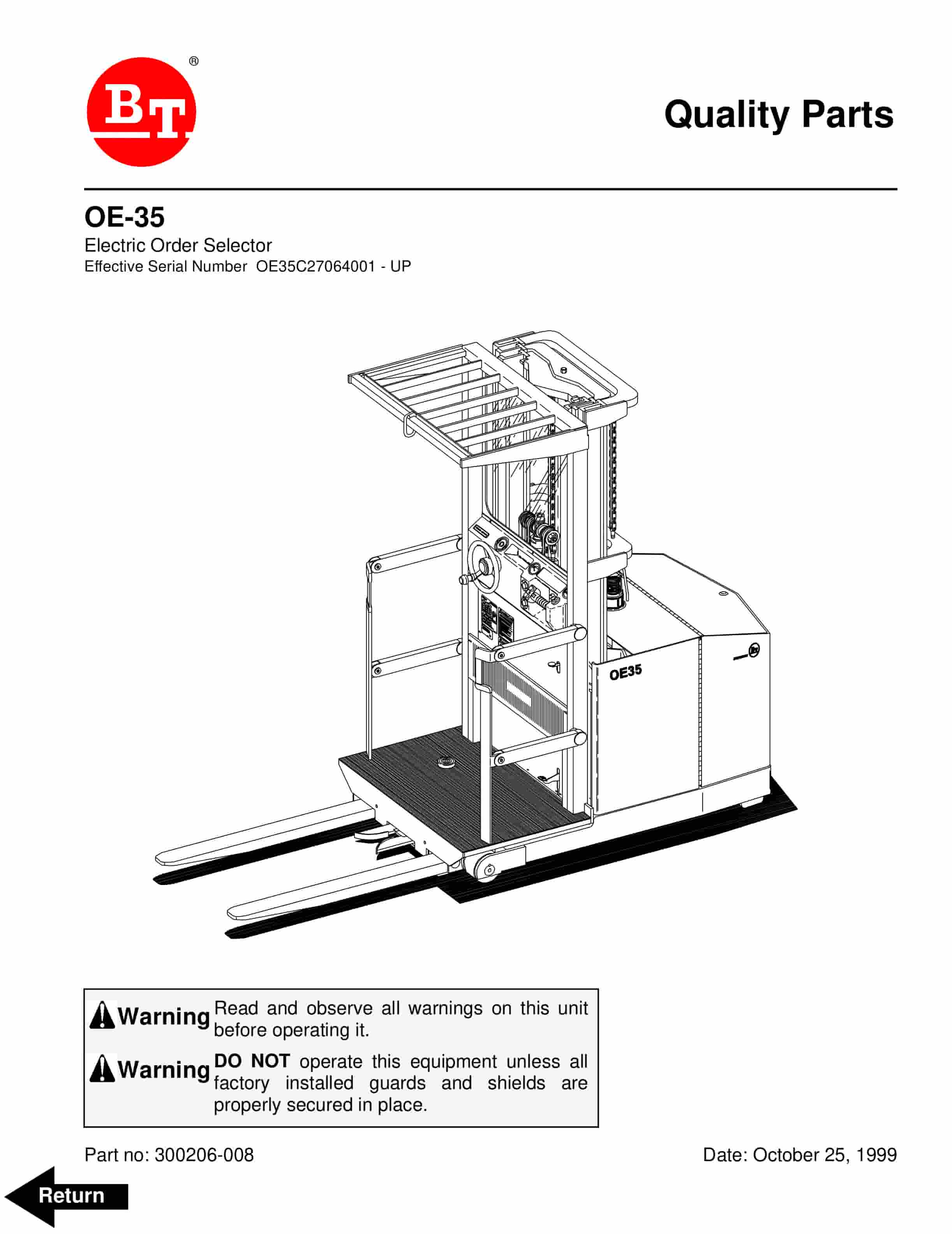 BT OE-35 Electric Order Selector Parts Manual 300206-008