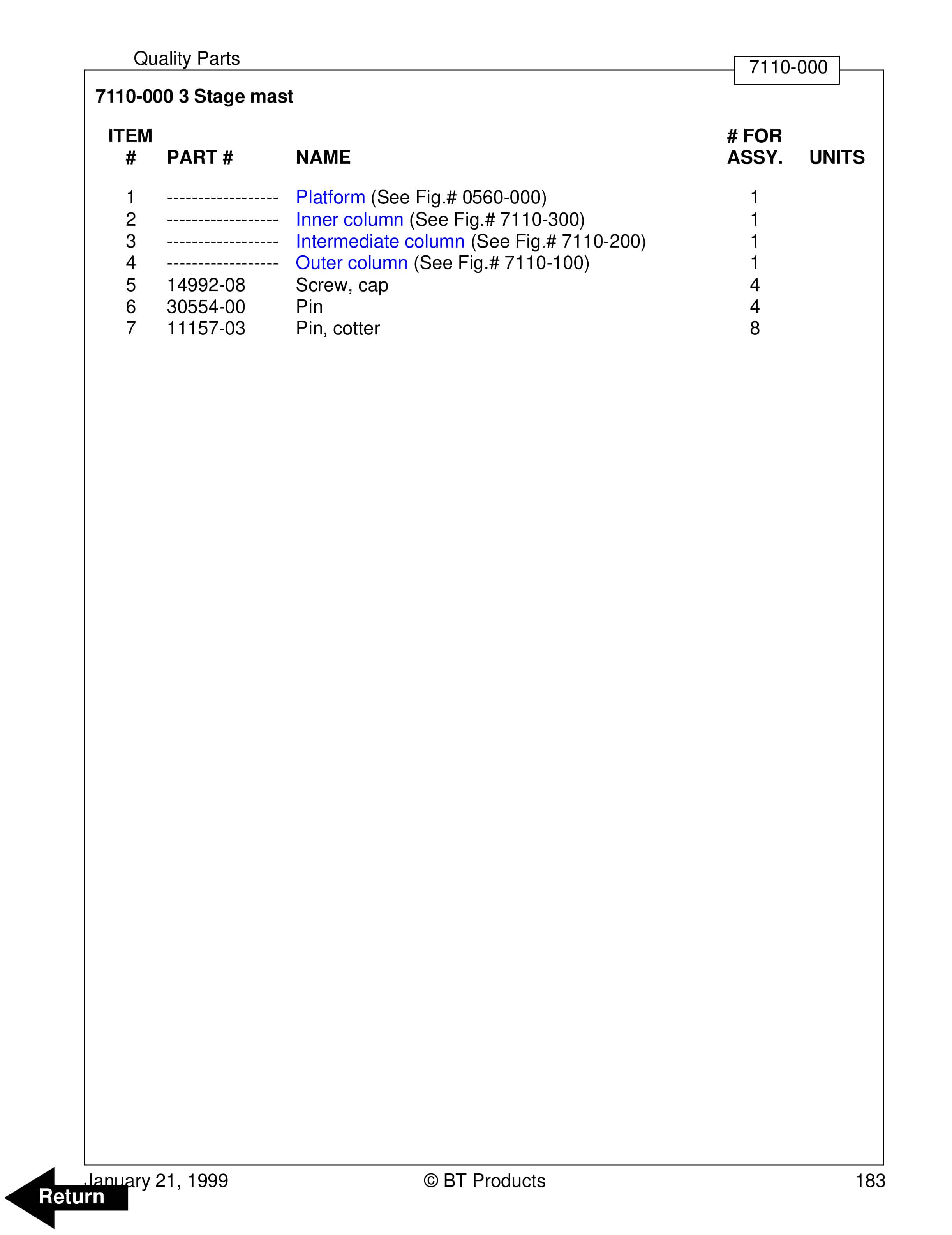 BT BTL20EW, BTL20EWO, BTL30EW, BTL30EWO, L20BR, L20BRO, L30BR, L30BRO Quality Parts 177967