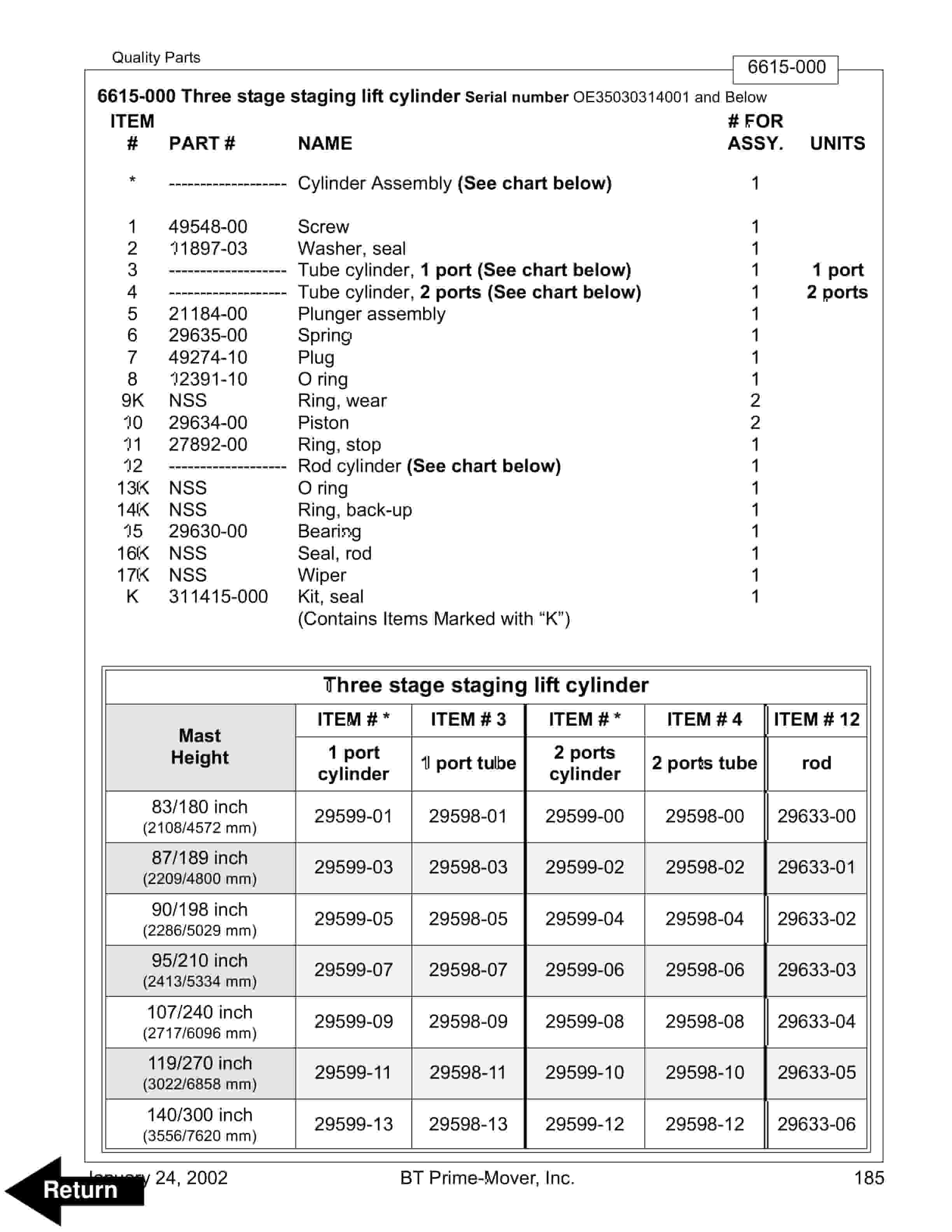 • 10.12. Three stage staging lift cylinder Serial number OE35030314001 and Below