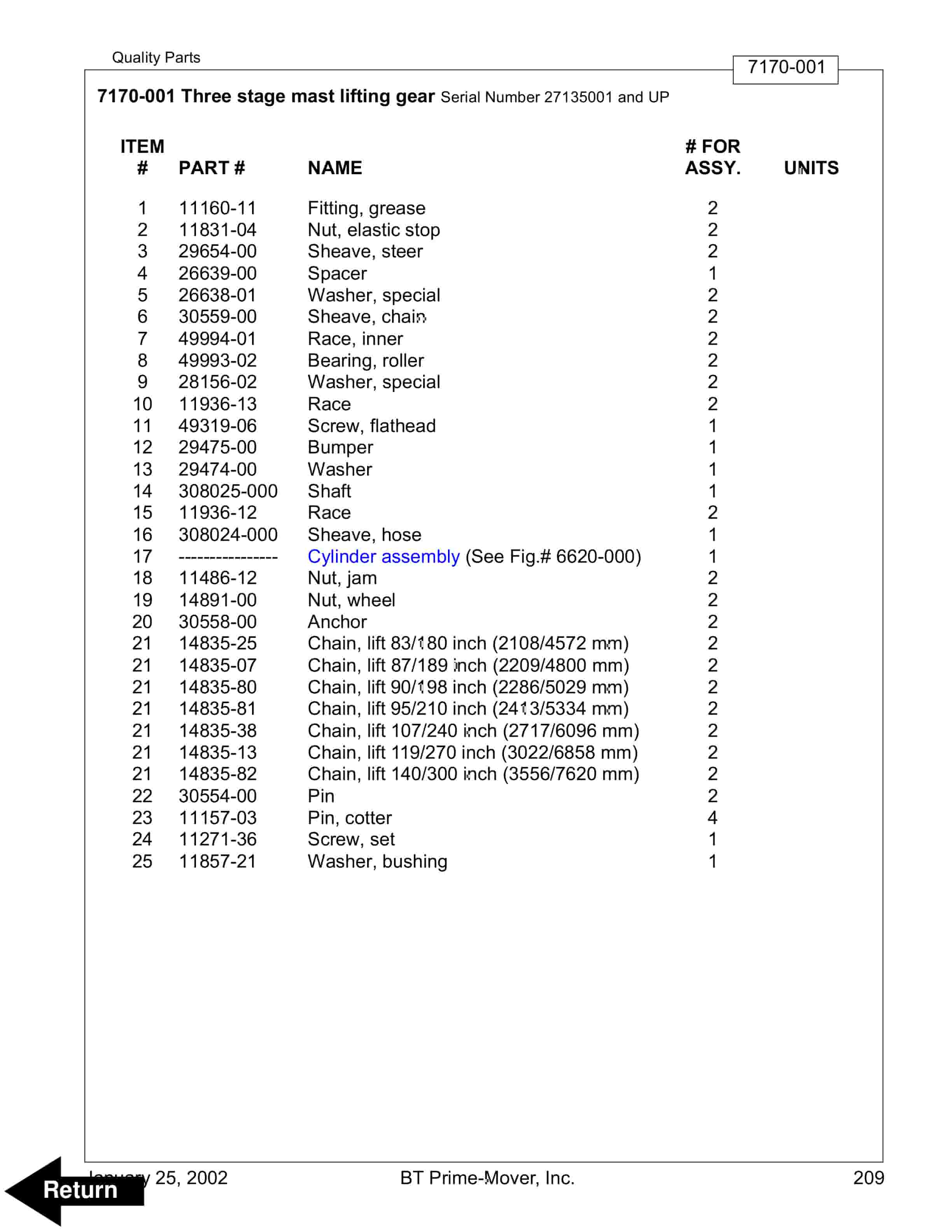 • 11.9. Three stage mast lifting gear Serial Number 27135001 and UP
