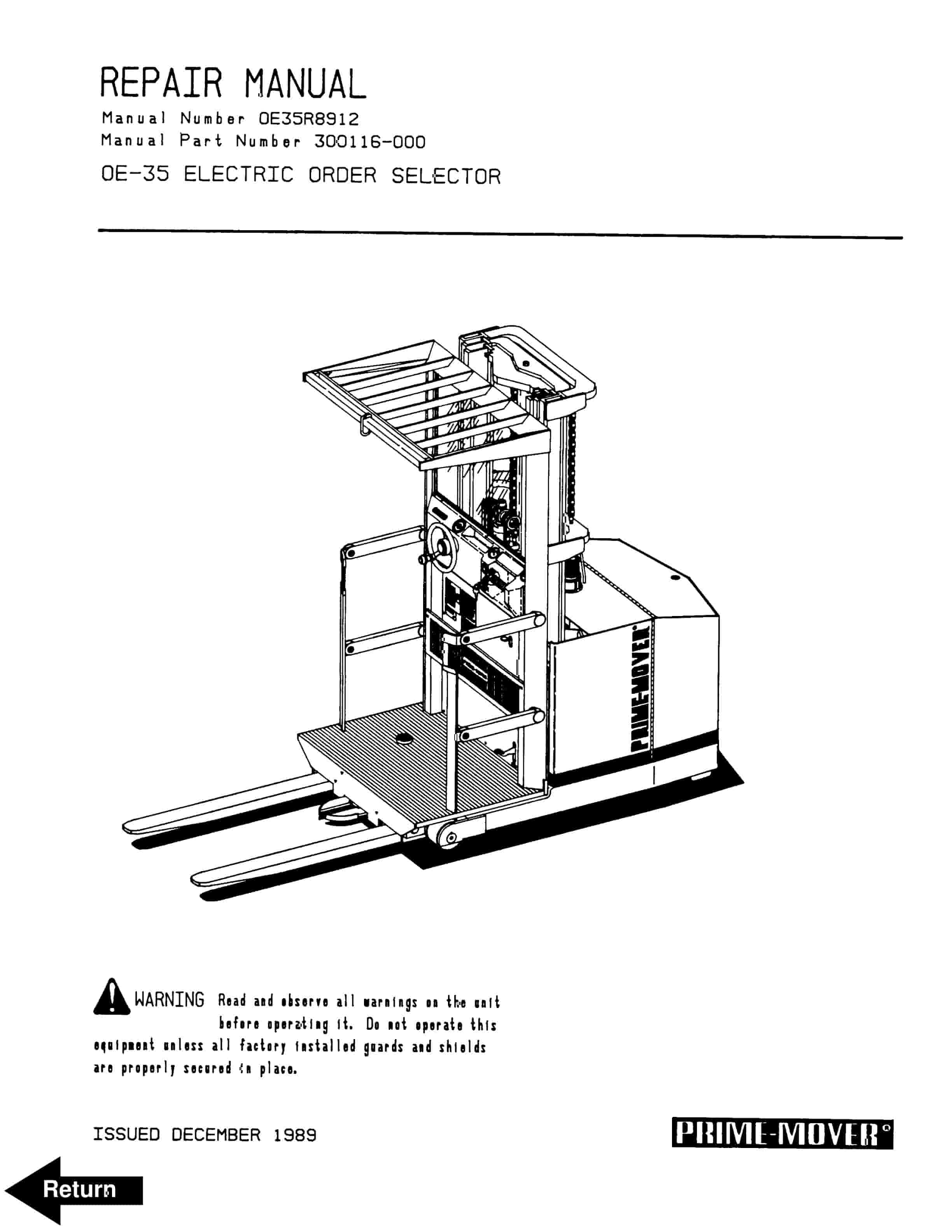 BT OE-35 Electric Order Selector Repair Manual 300116-000