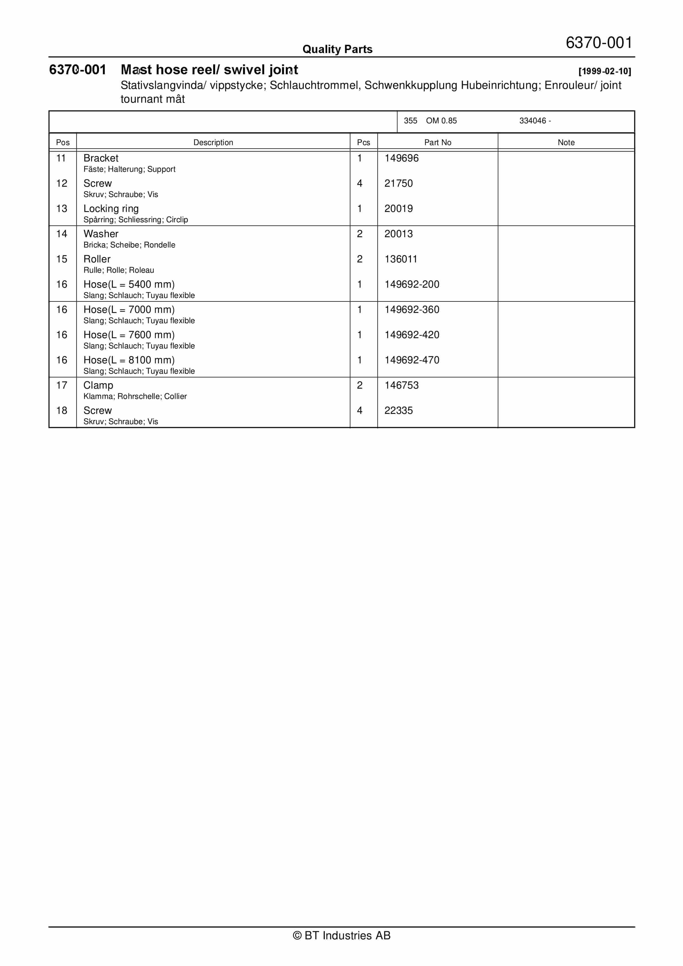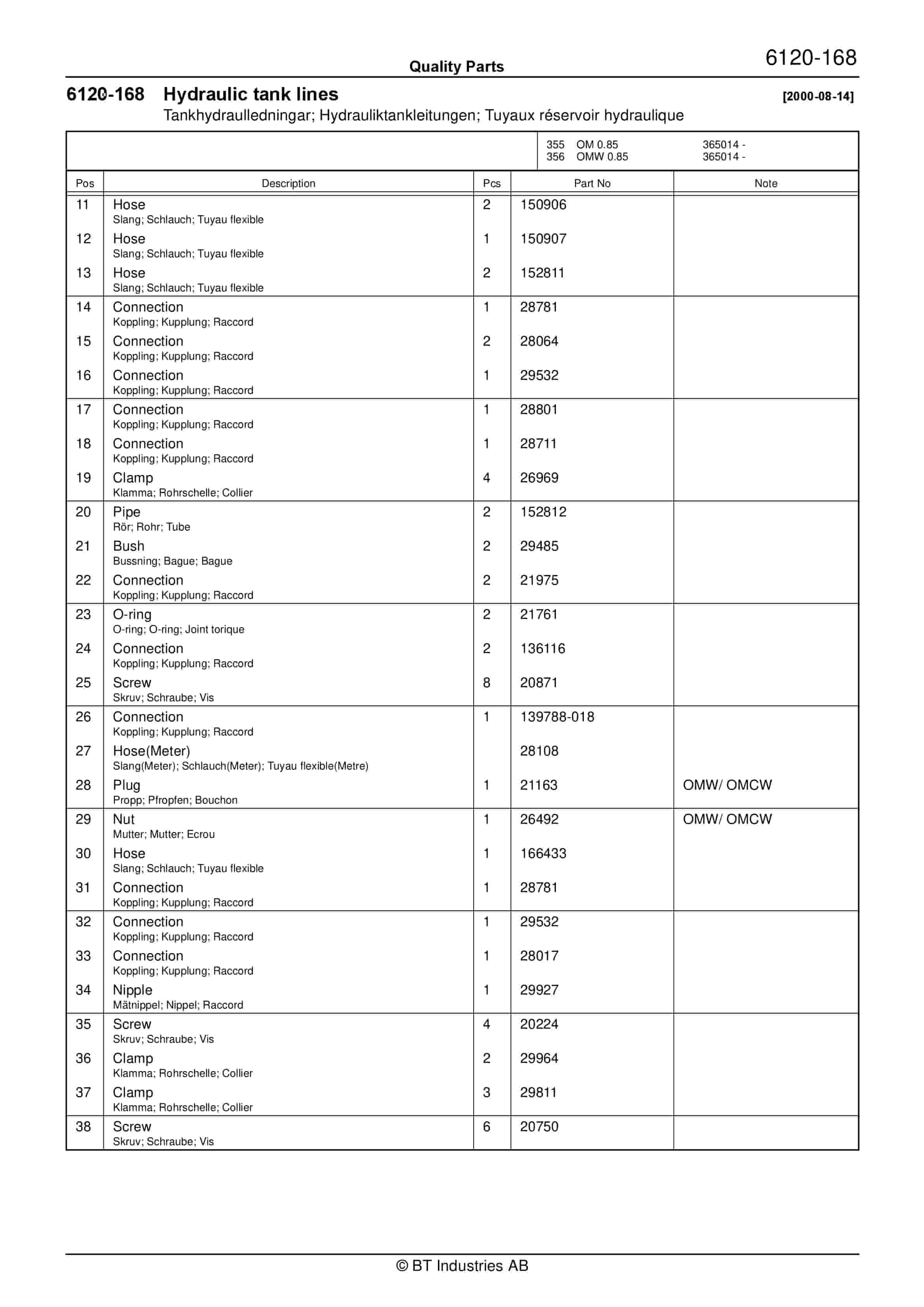 BT 602-TT, 608-TT, 609-TT, 610-TT, 612-TT, 620-TT Quality Parts 07904570EB