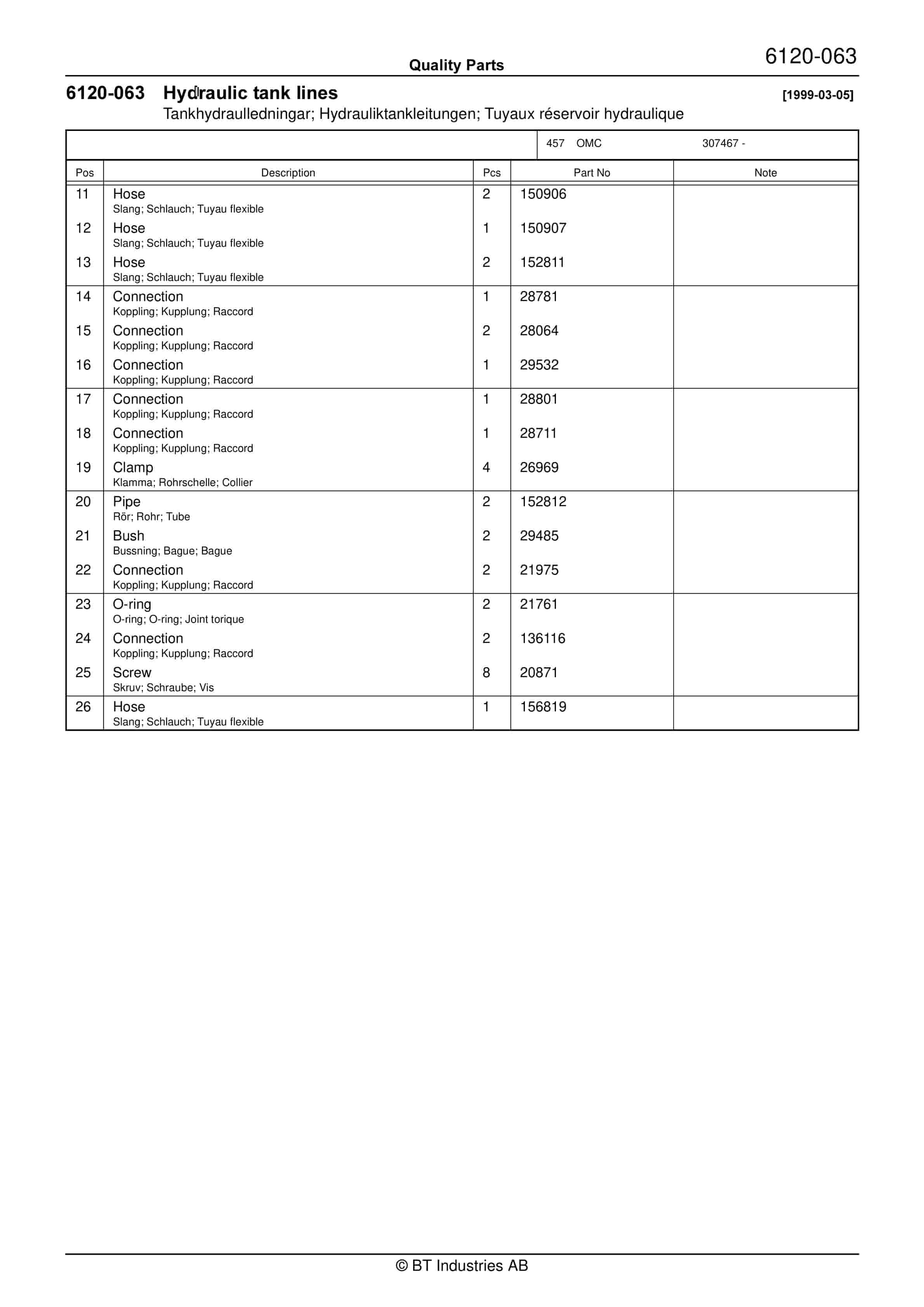 BT 602-TT, 608-TT, 609-TT, 610-TT, 612-TT, 620-TT Quality Parts 241857