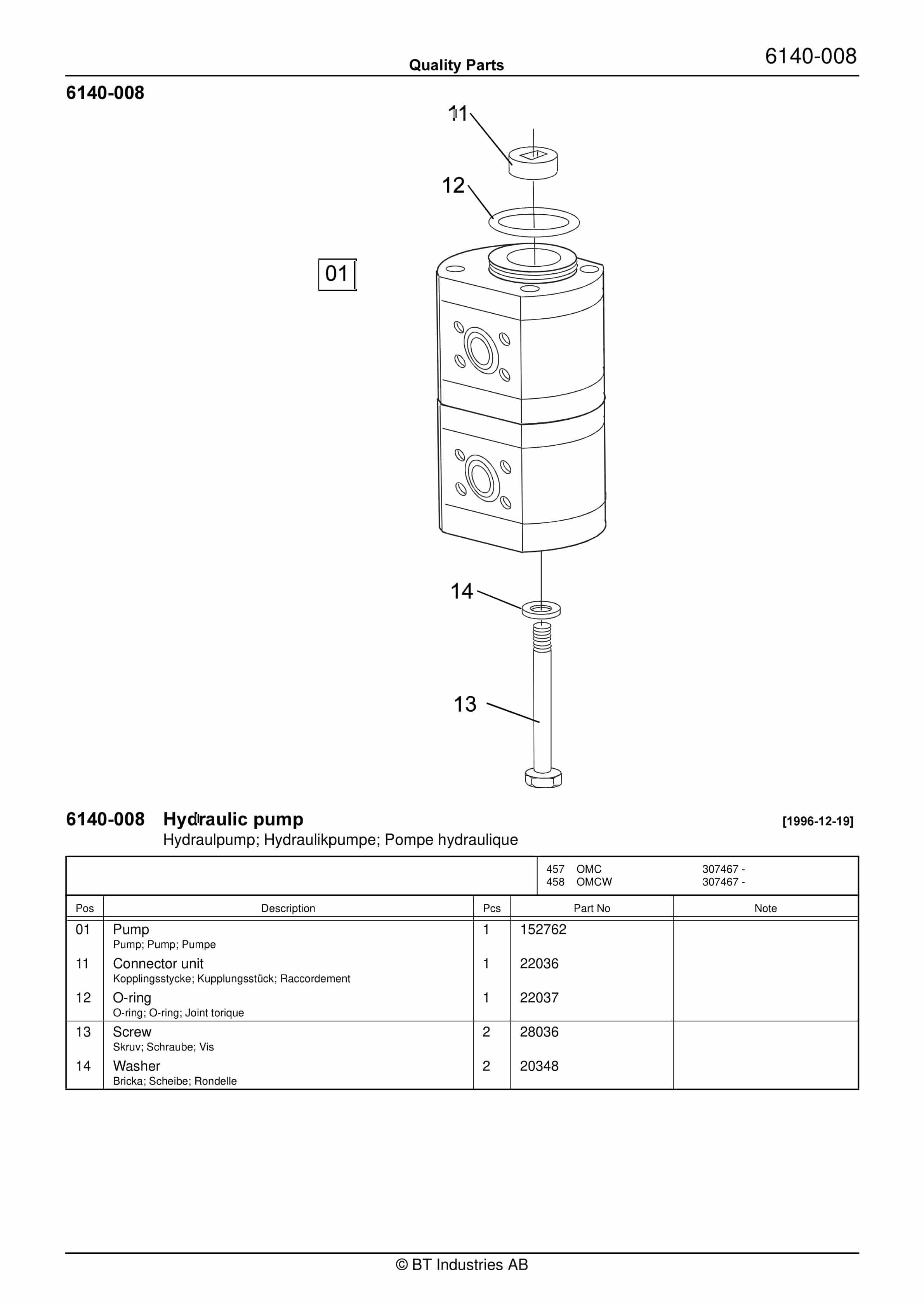 BT 600-TT, 602-TT, 604-TT, 608-TT, 609-TT, 610-TT, 612-TT, 620-TT Quality Parts 208538