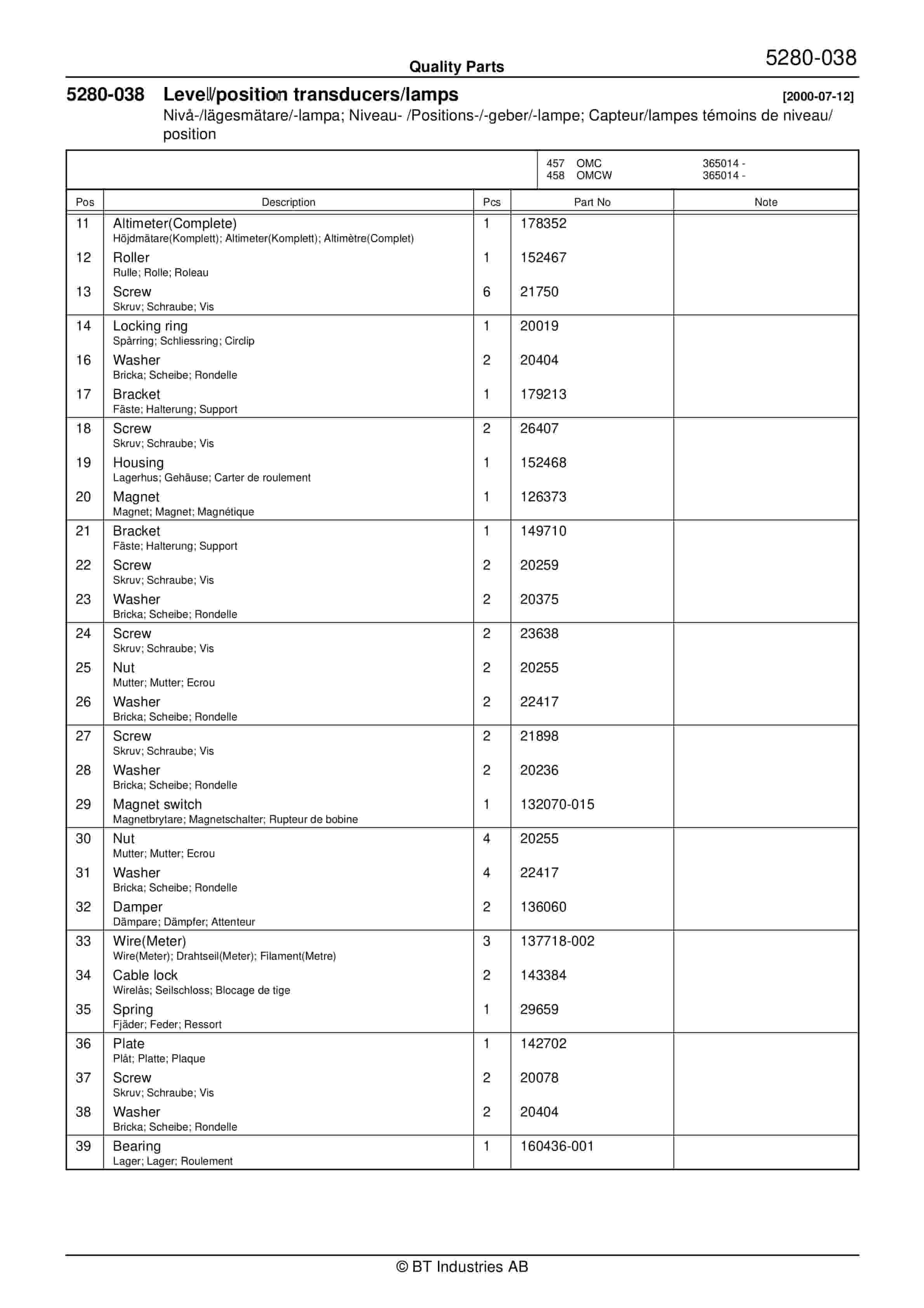 BT OMC, OMCW Quality Parts 181409