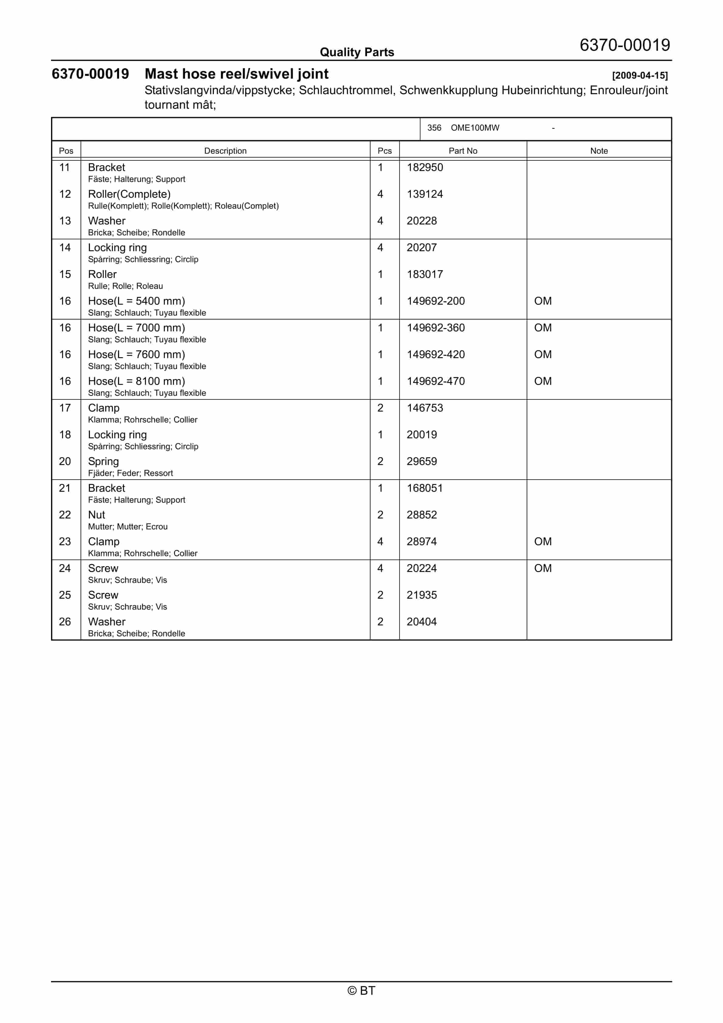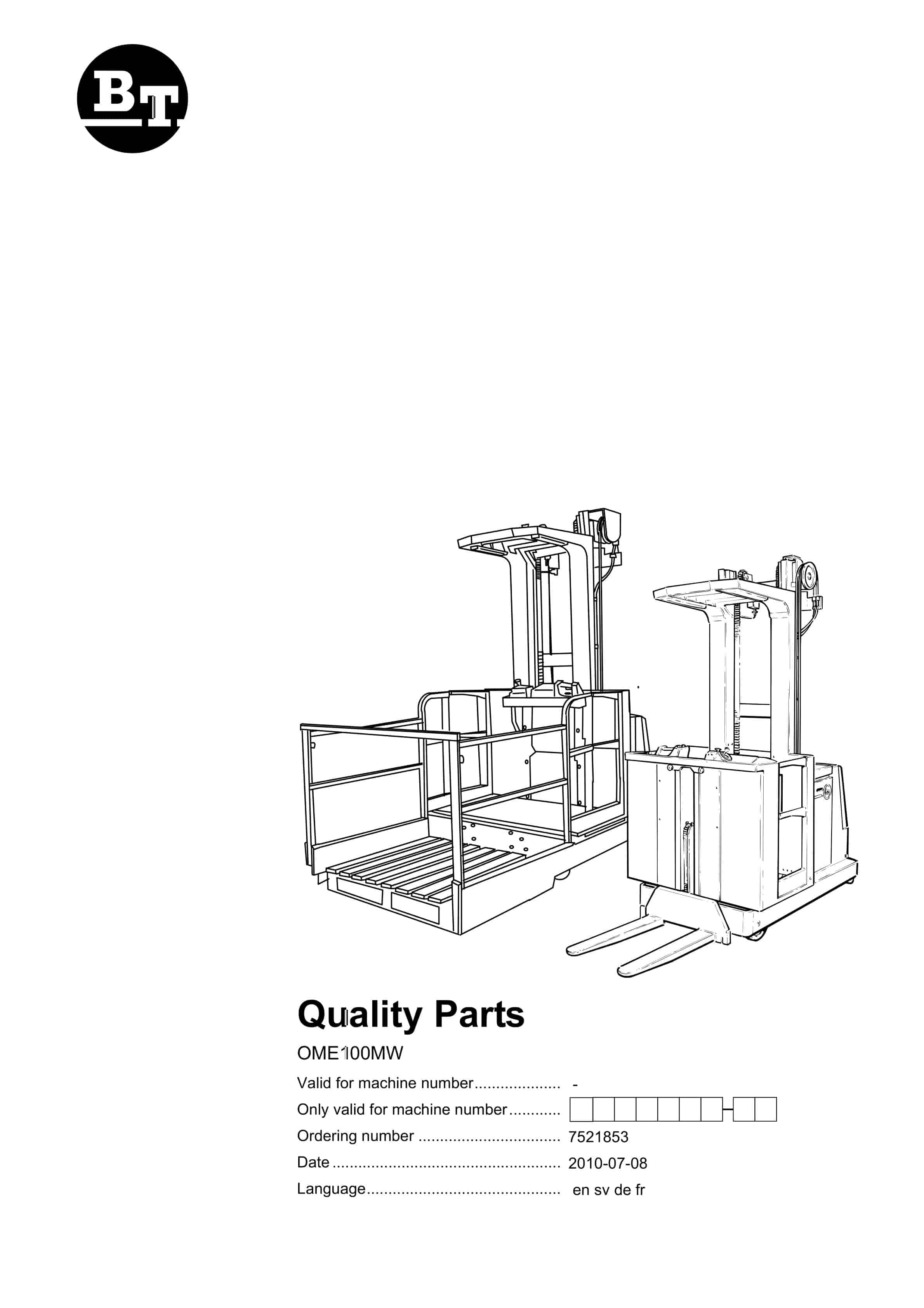 BT BTL20EW, BTL20EWO, BTL30EW, BTL30EWO, L20BR, L20BRO, L30BR, L30BRO Quality Parts 177967