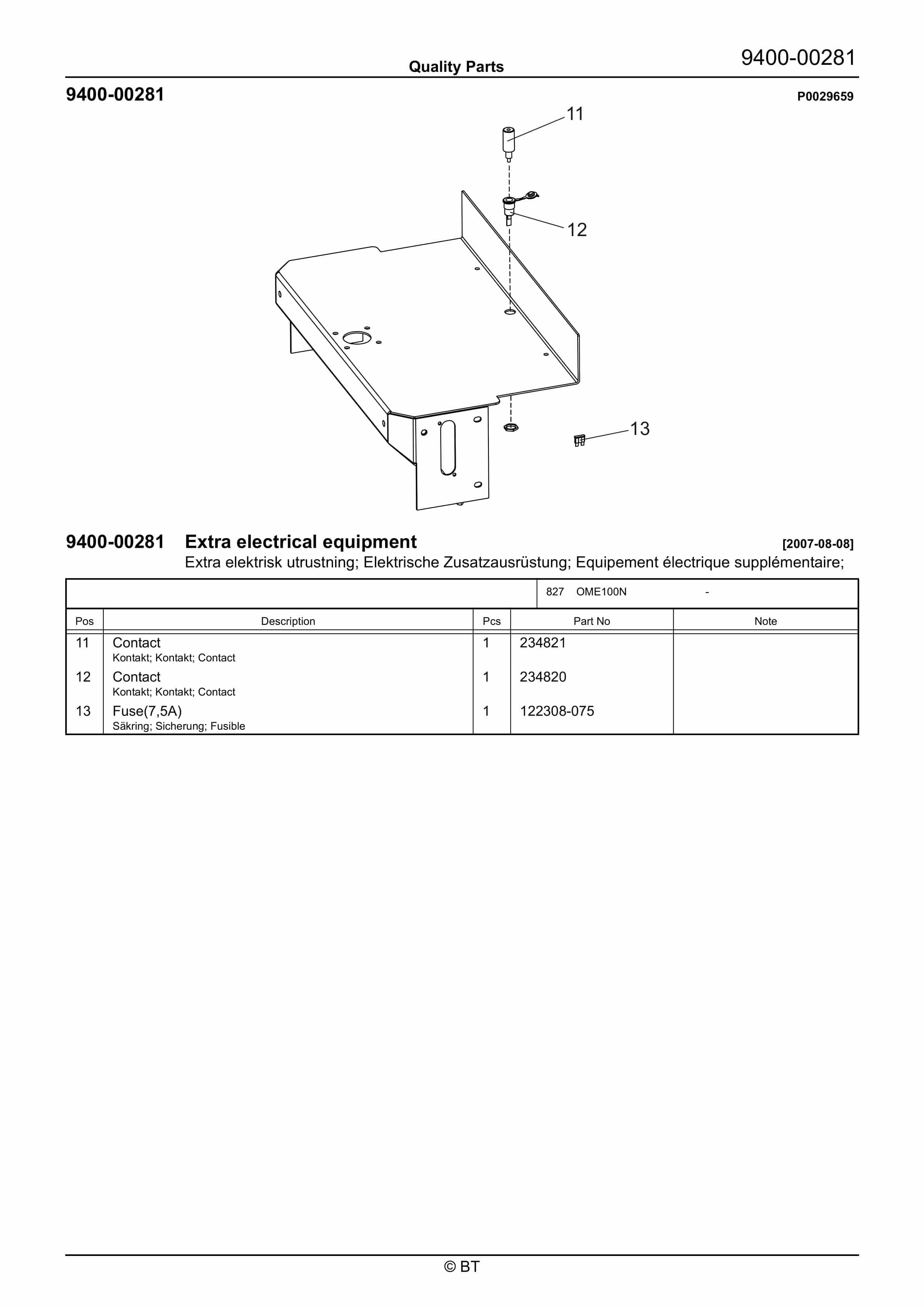 BT BTL2000, BTL2000I, BTL2000K, BTL2000O, BTL2000Q, BTL2000X, BTL2000U, BTL2000QX, Serial 11 Quality Parts 170417