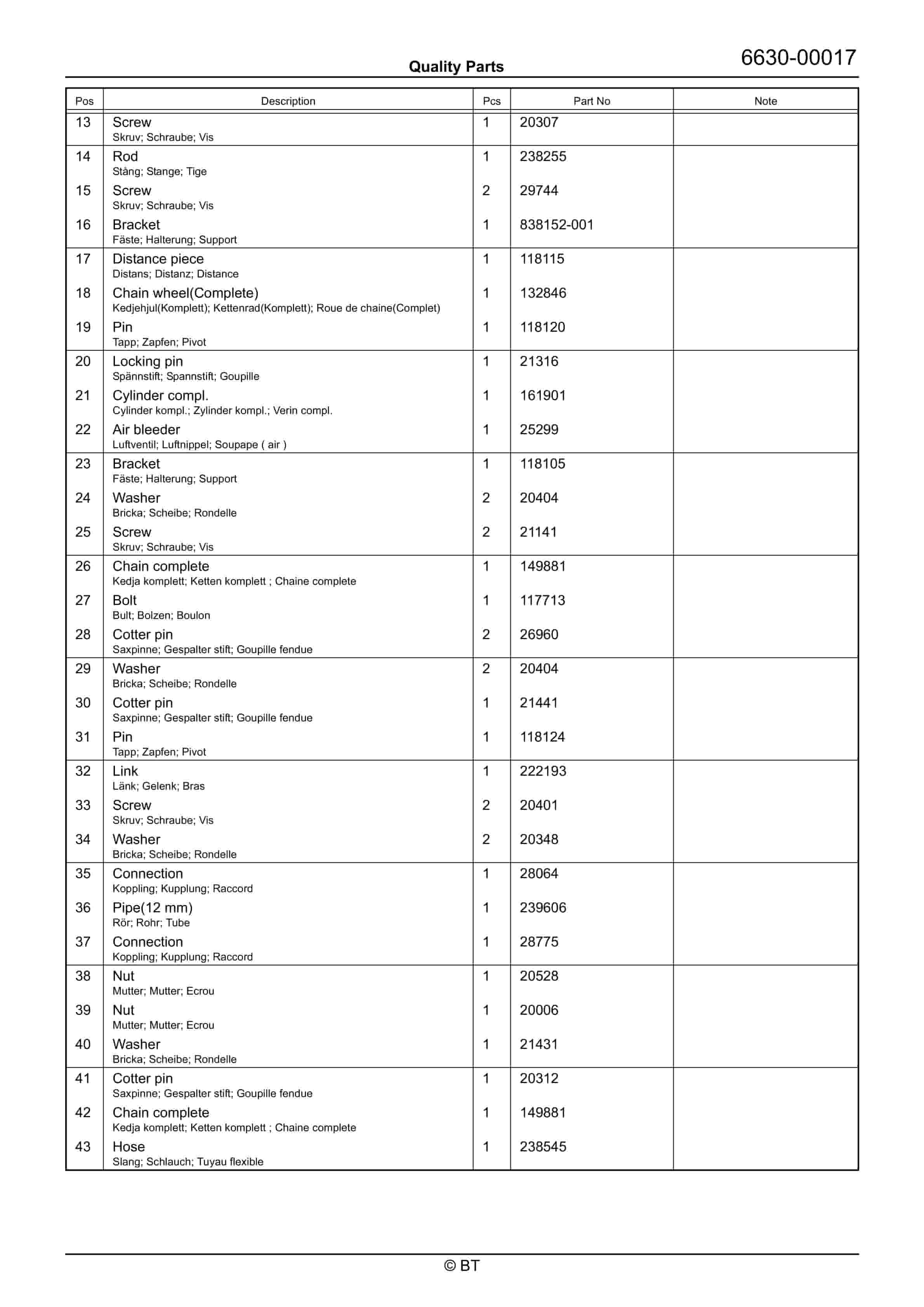 BT 602-TT, 608-TT, 609-TT, 610-TT, 612-TT, 620-TT (AC) Quality Parts 253711