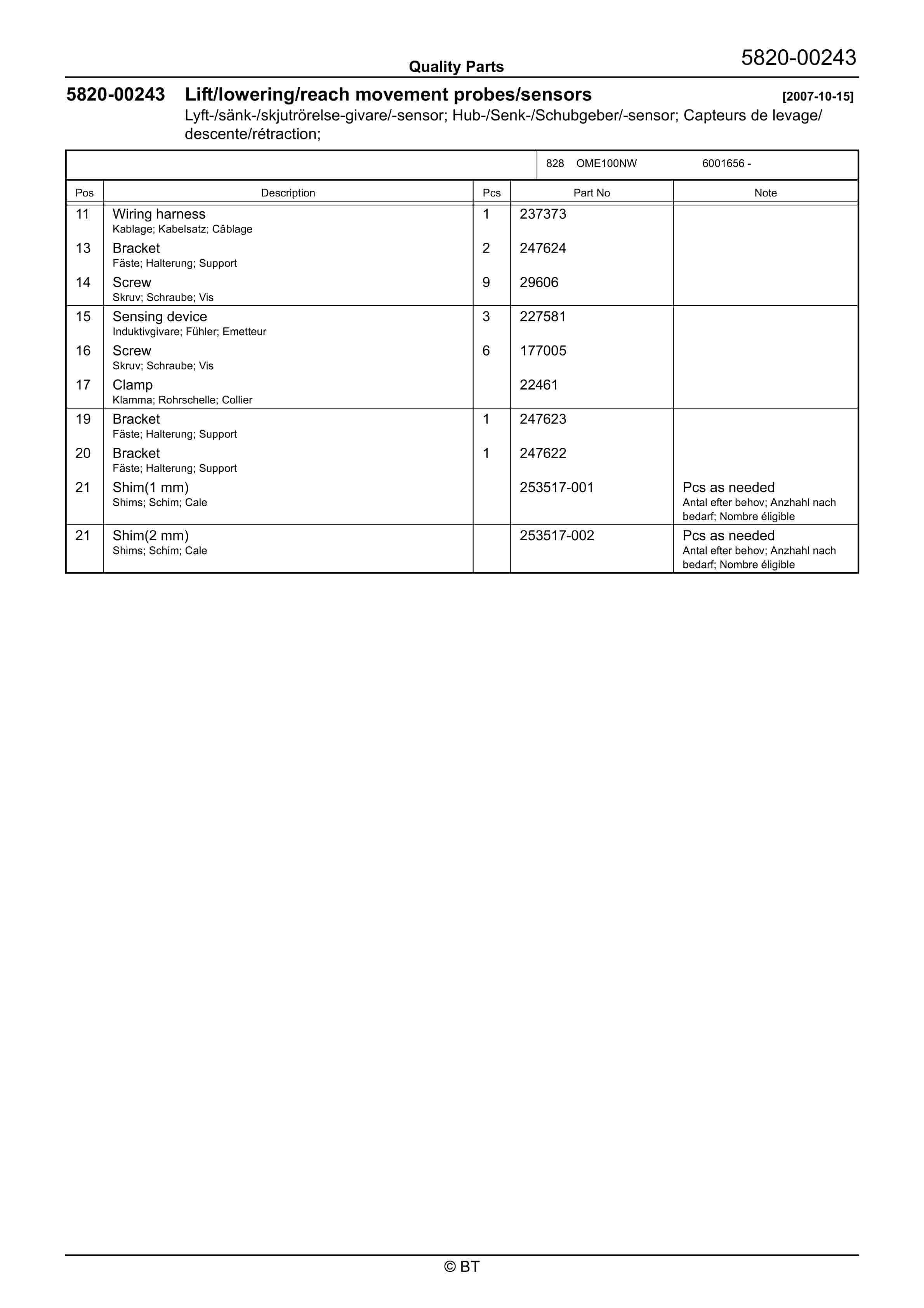 BT OME100NW Quality Parts 7521131