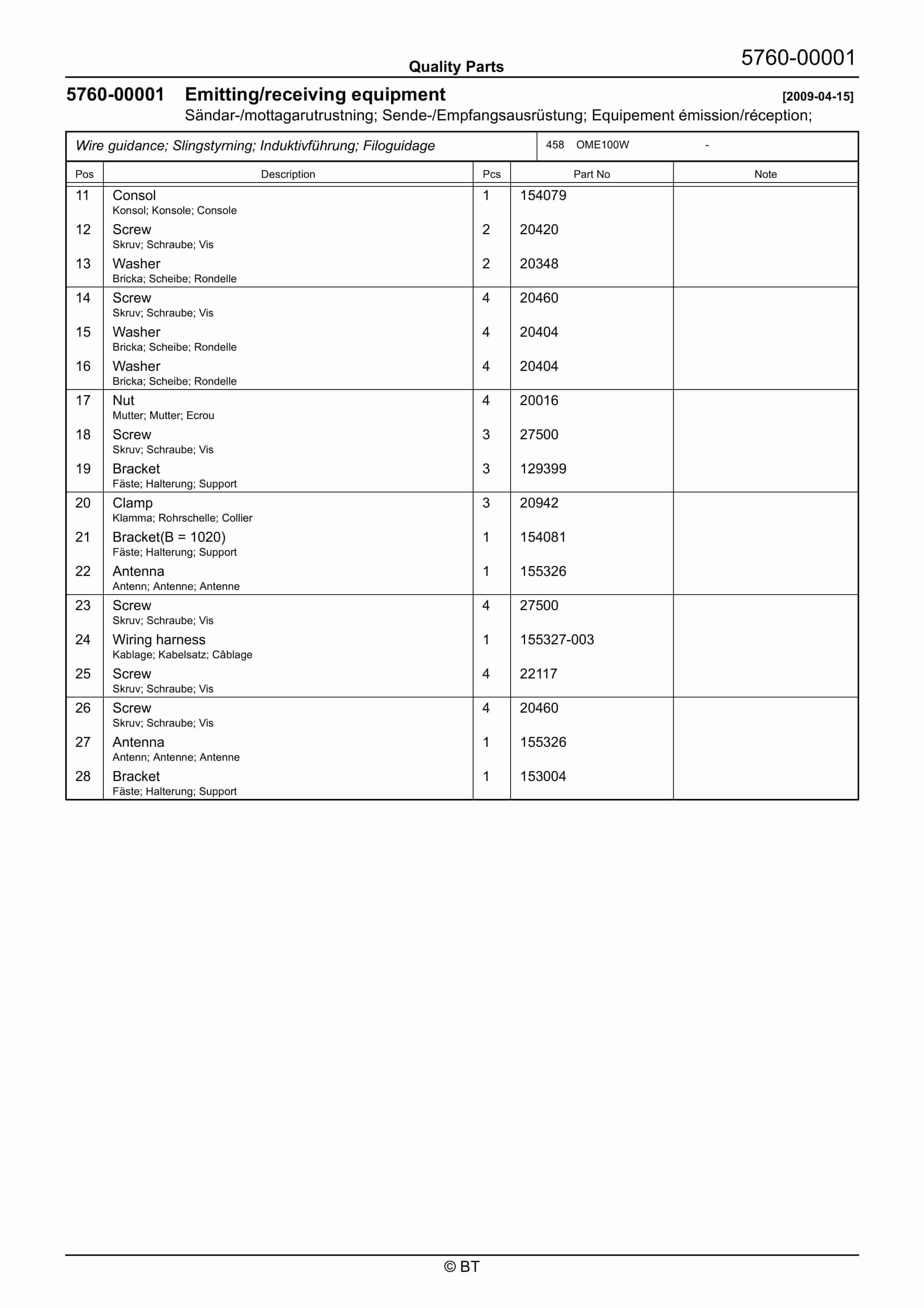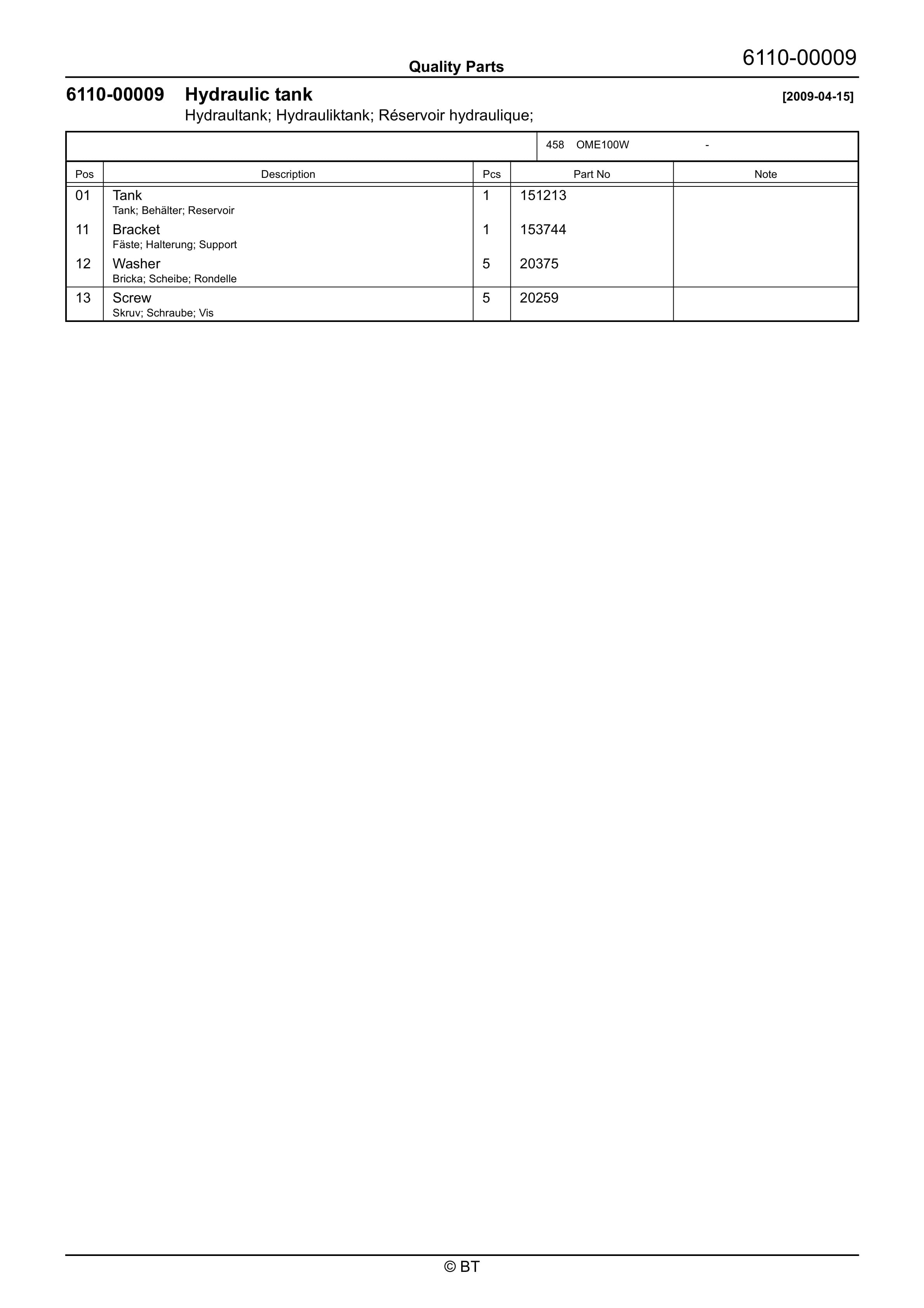 BT 602-TT, 608-TT, 609-TT, 610-TT, 612-TT, 620-TT Quality Parts 07904570EB