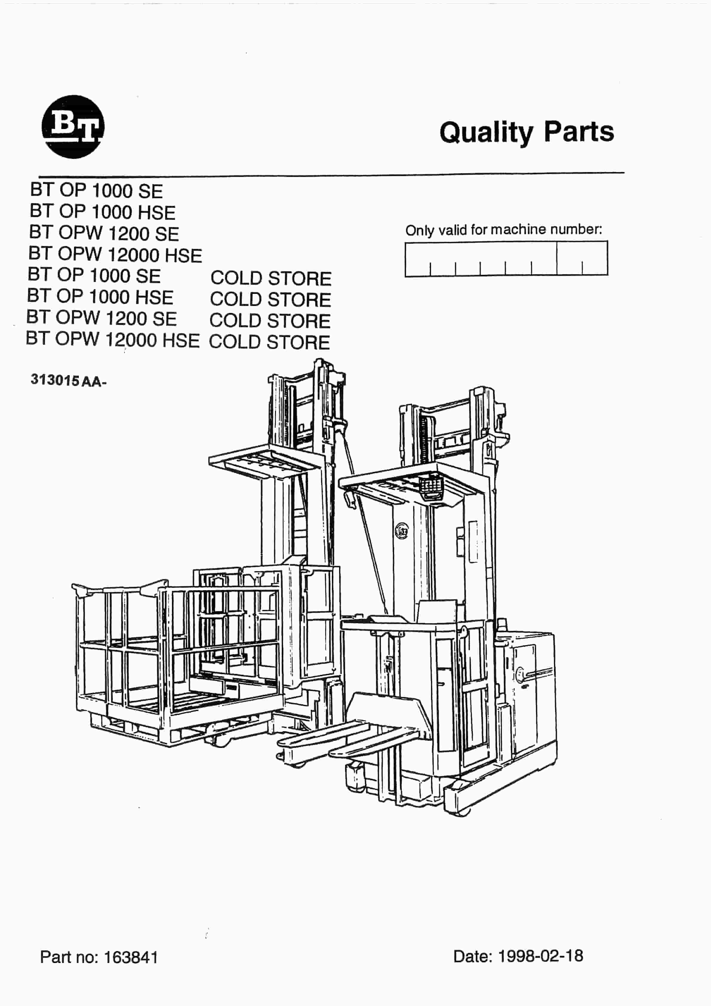 BT OP 1000 SE to OPW 1200 HSE Cold Store Quality Parts 163841