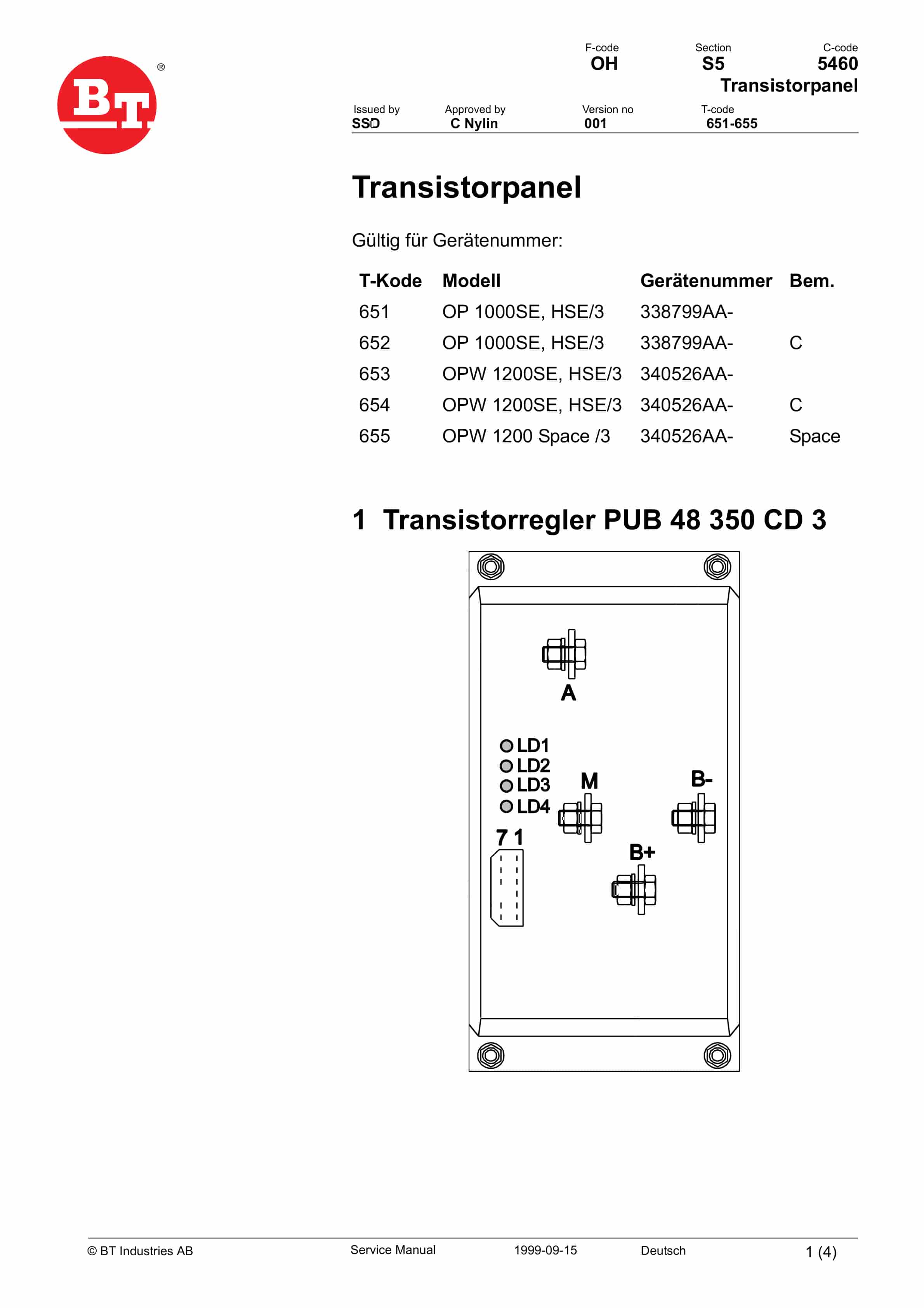 BT OP 1000SE-HSE-3, OPW 1200SE-HSE-3, OPW 1200 Space-3 Service Manual 173065-120