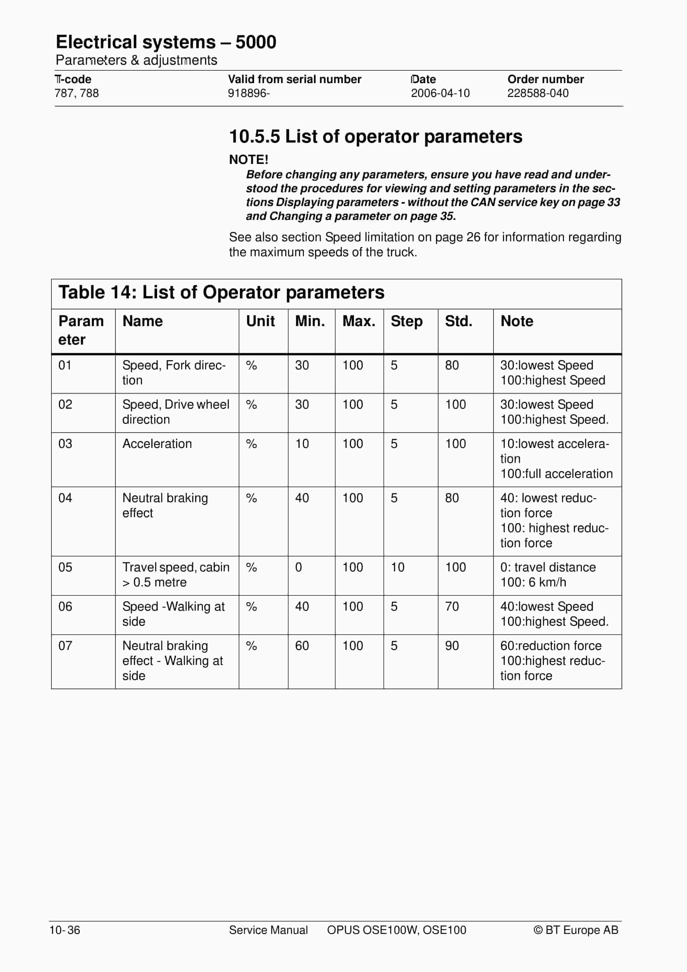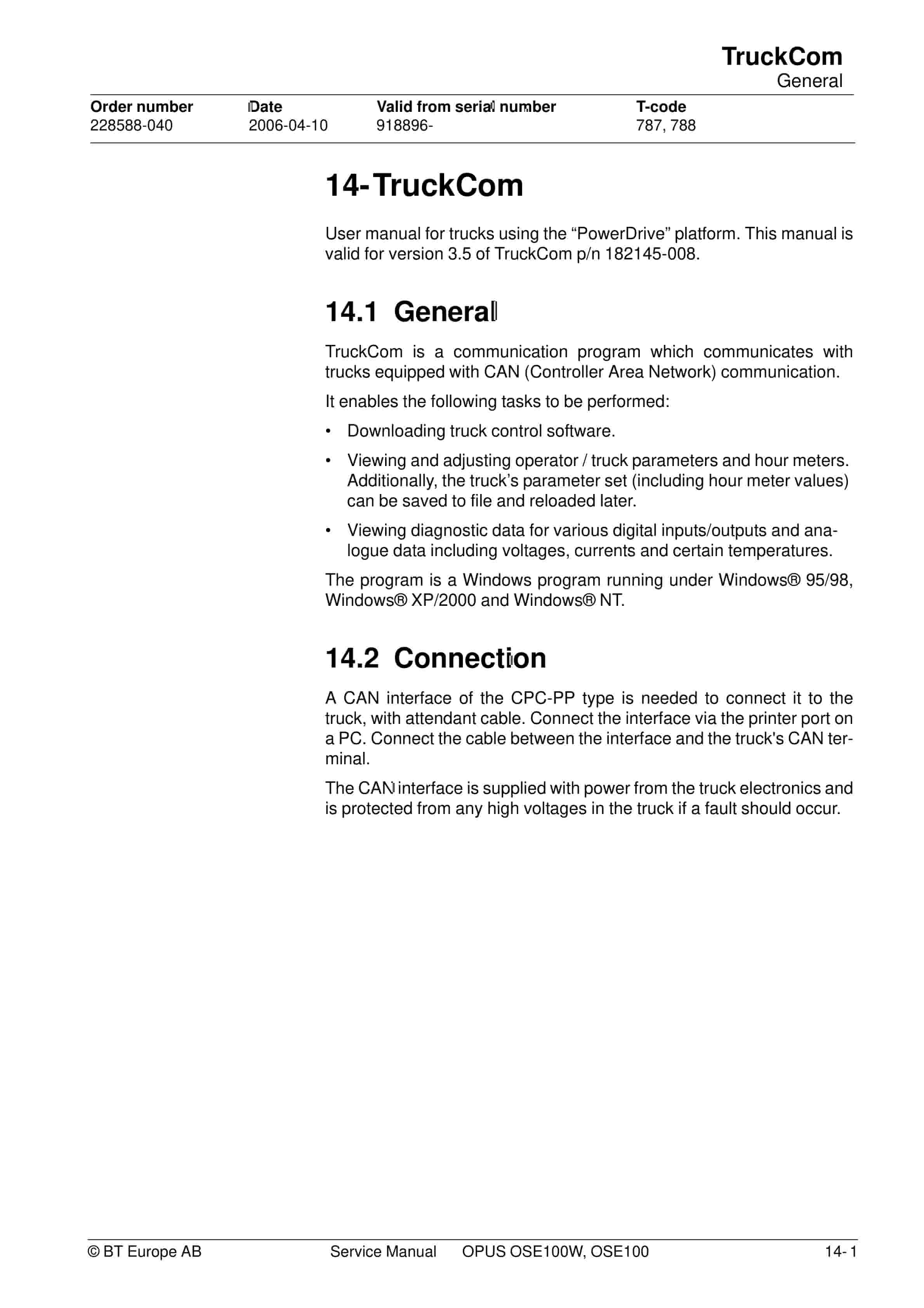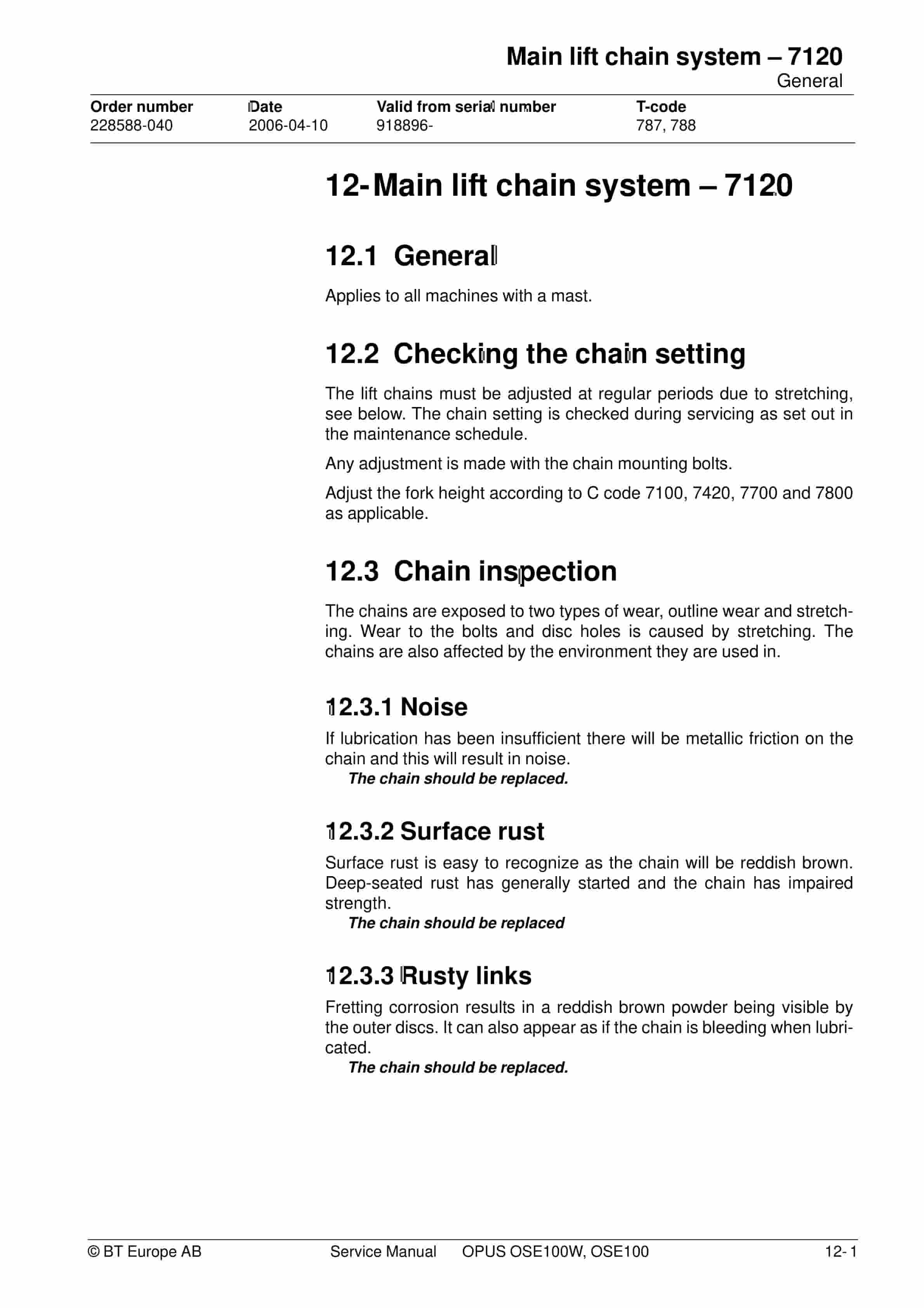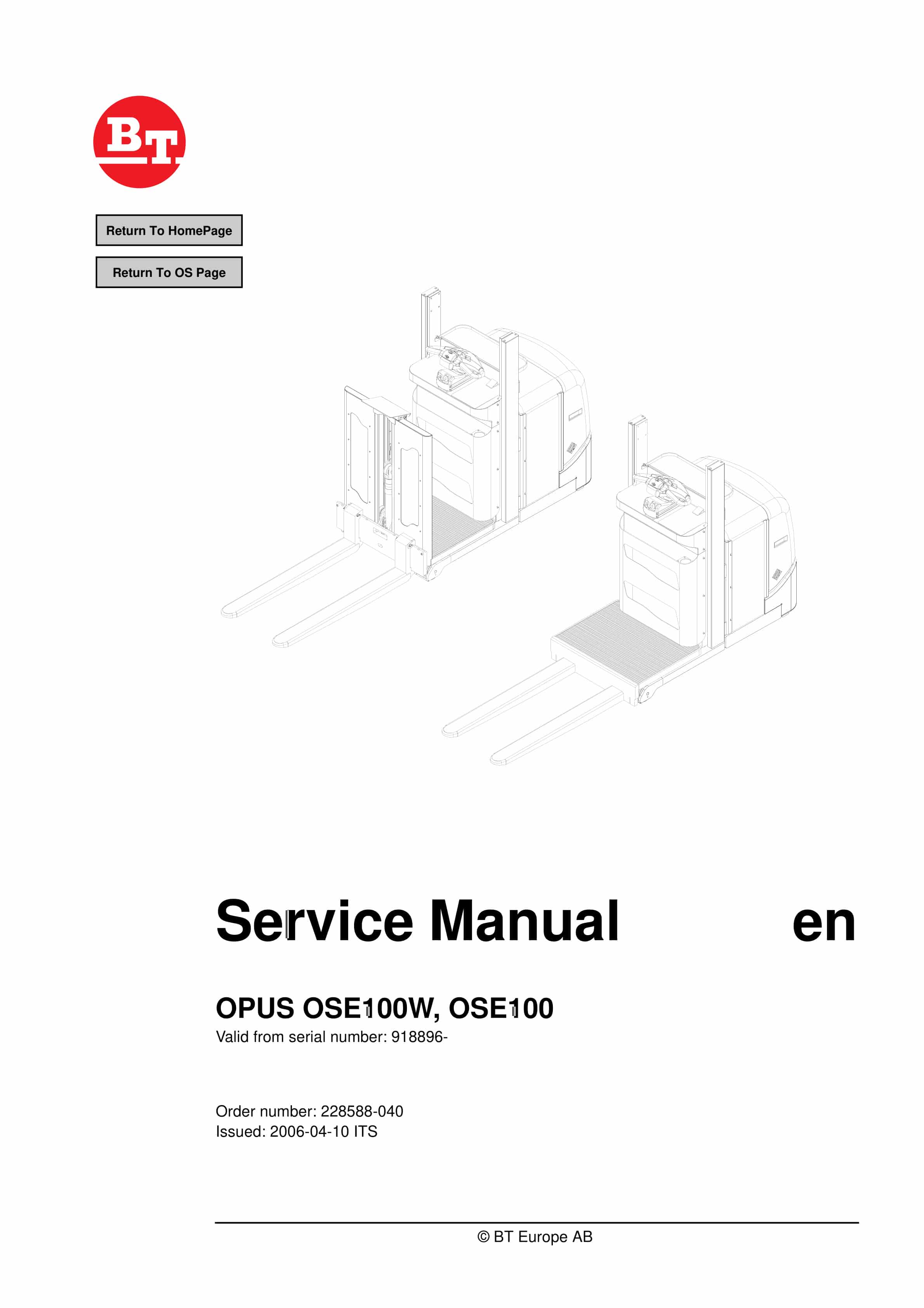 BT OPUS OSE100W, OSE100 Service Manual 228588-040