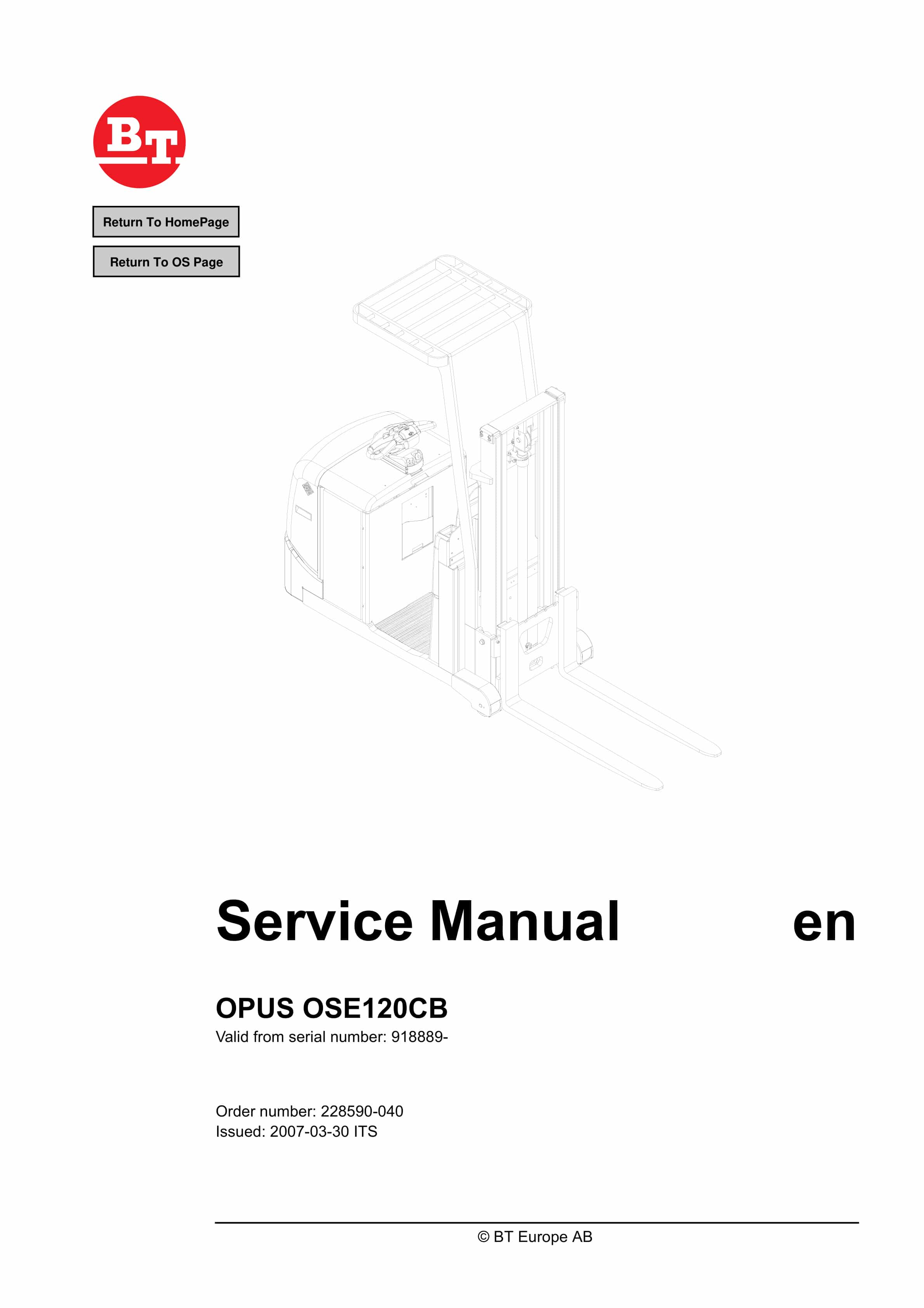 BT CMX60, CMX80 Electric Center Riding Pallet Truck Service Manual 302825-000