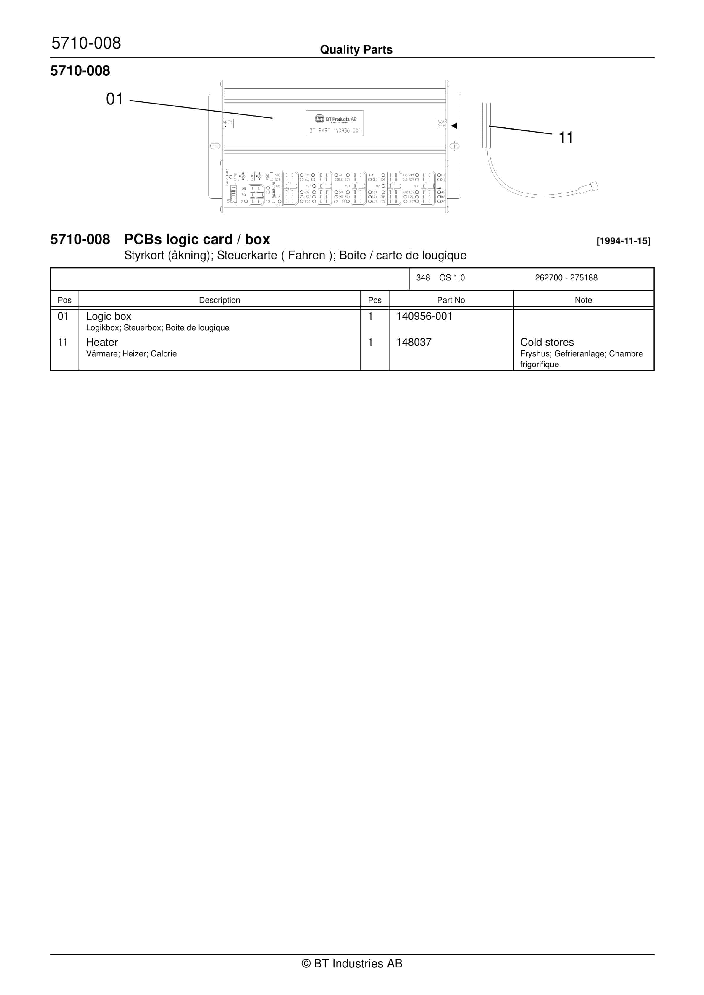 BT BTL2000, BTL2000I, BTL2000K, BTL2000O, BTL2000Q, BTL2000X, BTL2000U, BTL2000QX, Serial 11 Quality Parts 170417