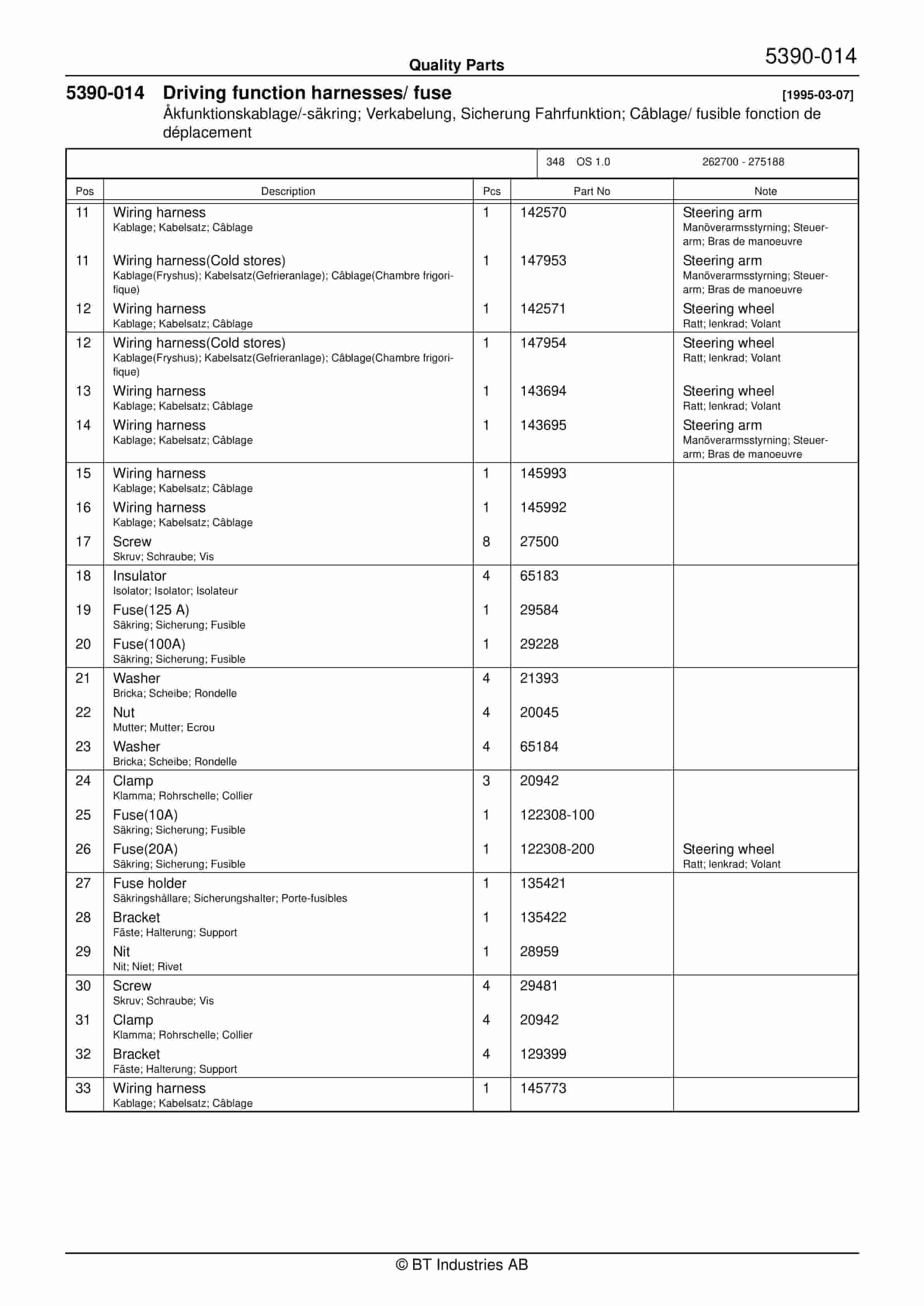 BT BTL20EW, BTL20EWO, BTL30EW, BTL30EWO, L20BR, L20BRO, L30BR, L30BRO Quality Parts 177967