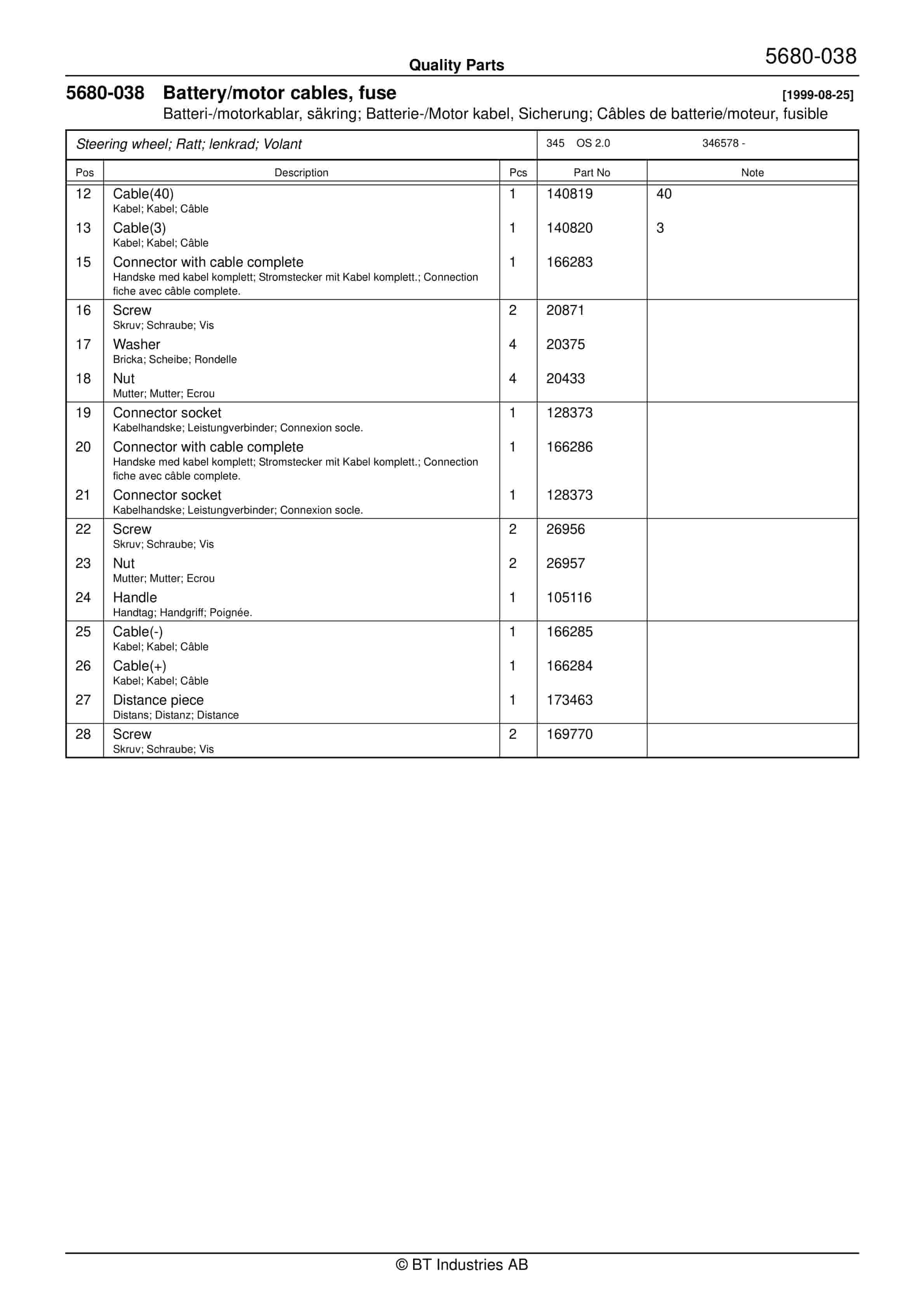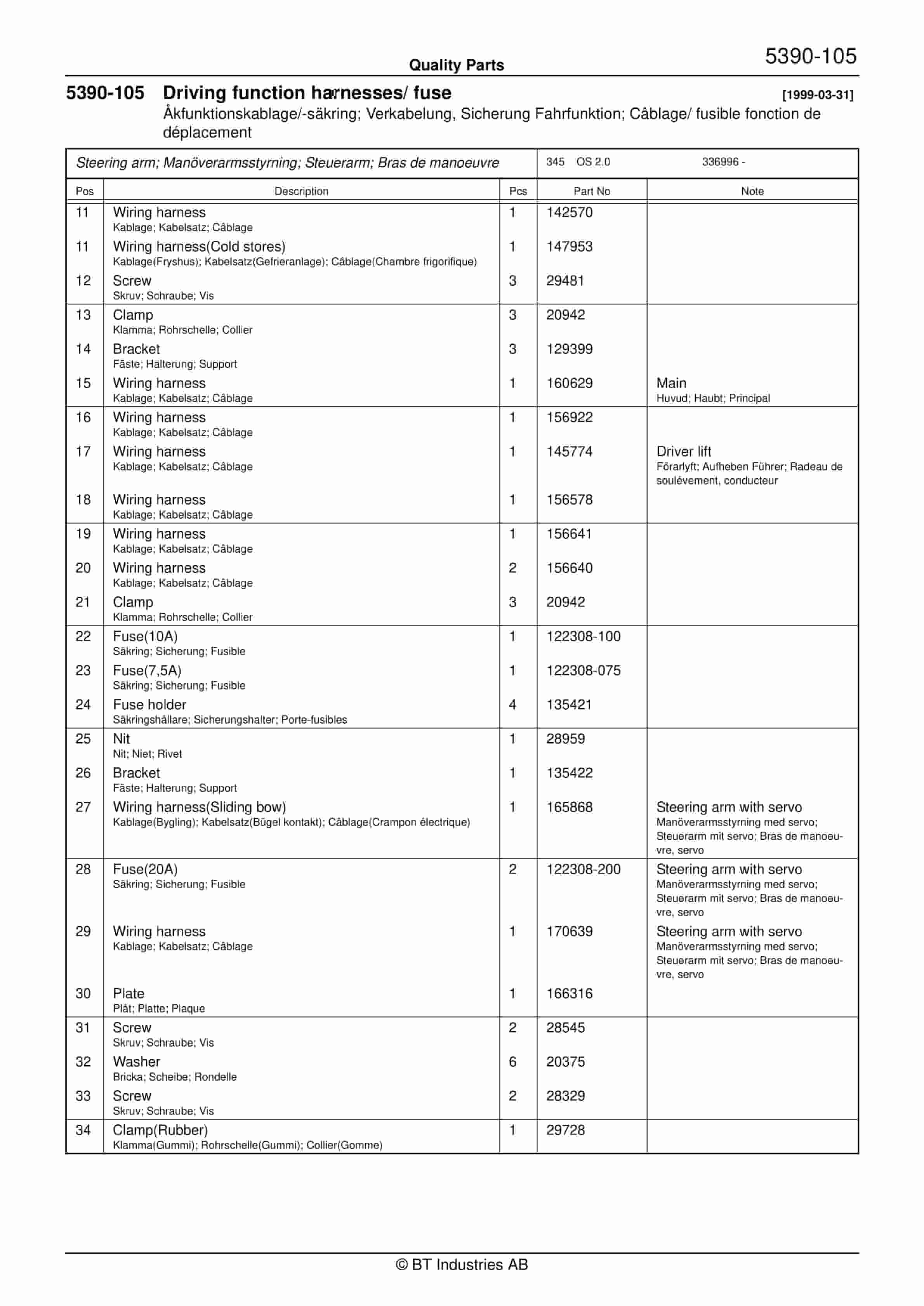BT 602-TT, 608-TT, 609-TT, 610-TT, 612-TT, 620-TT (AC) Quality Parts 253711