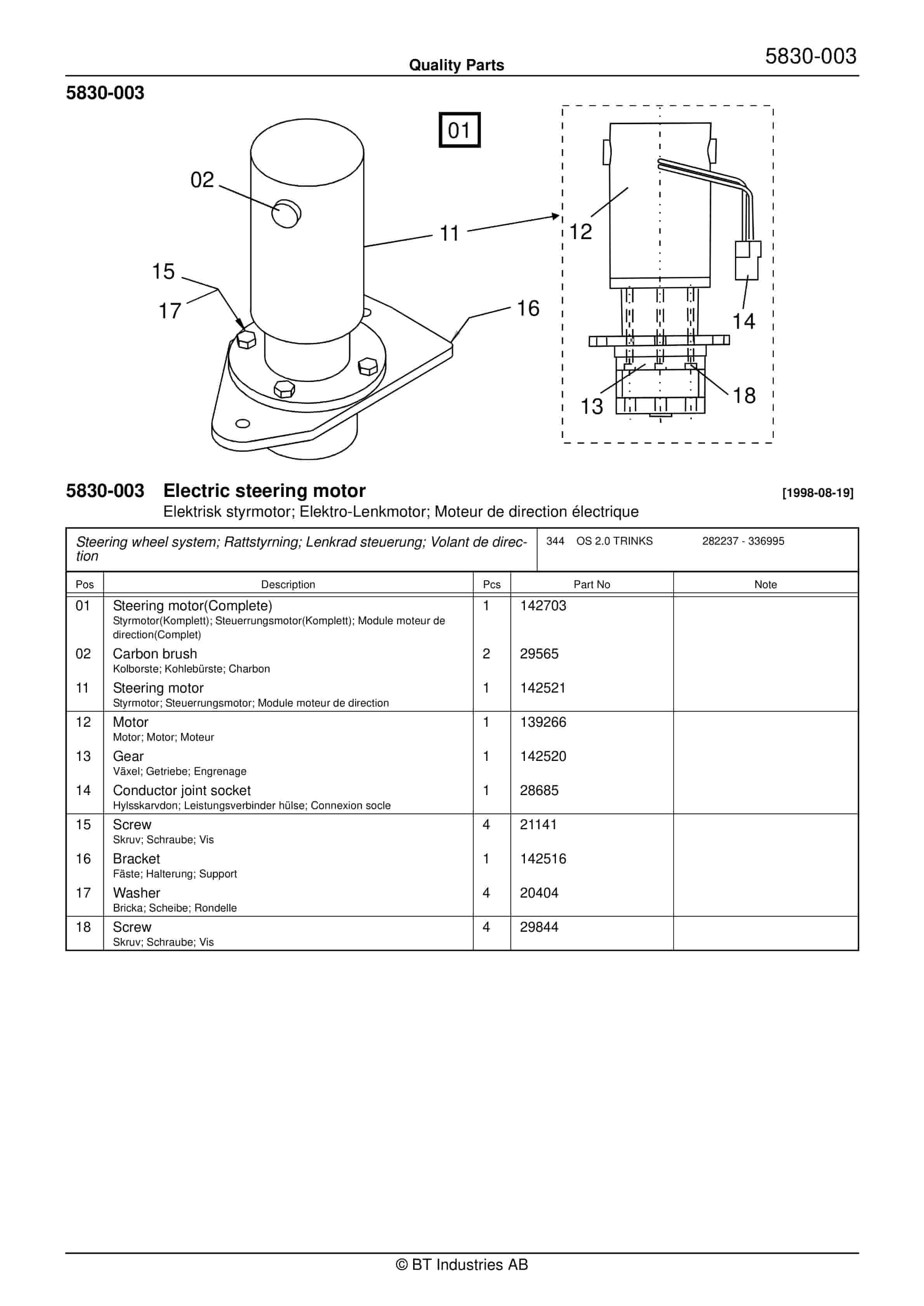 BT BTL20EW, BTL20EWO, BTL30EW, BTL30EWO, L20BR, L20BRO, L30BR, L30BRO Quality Parts 177967