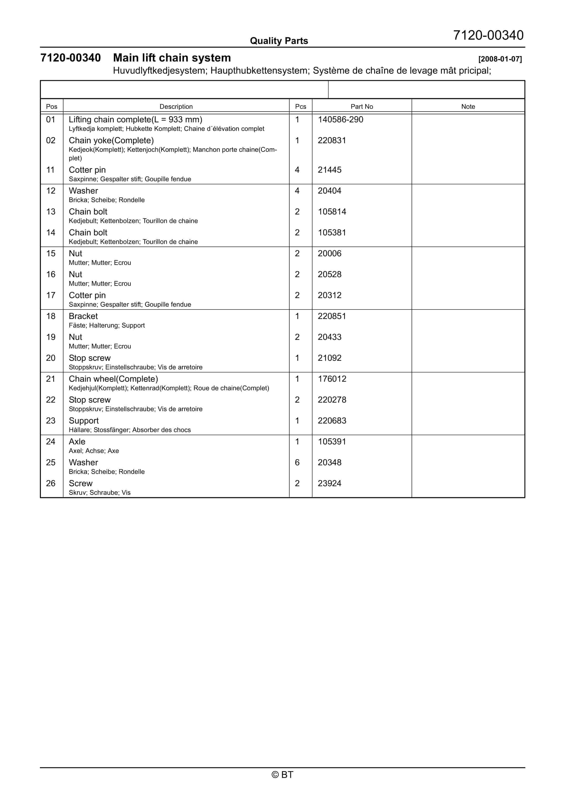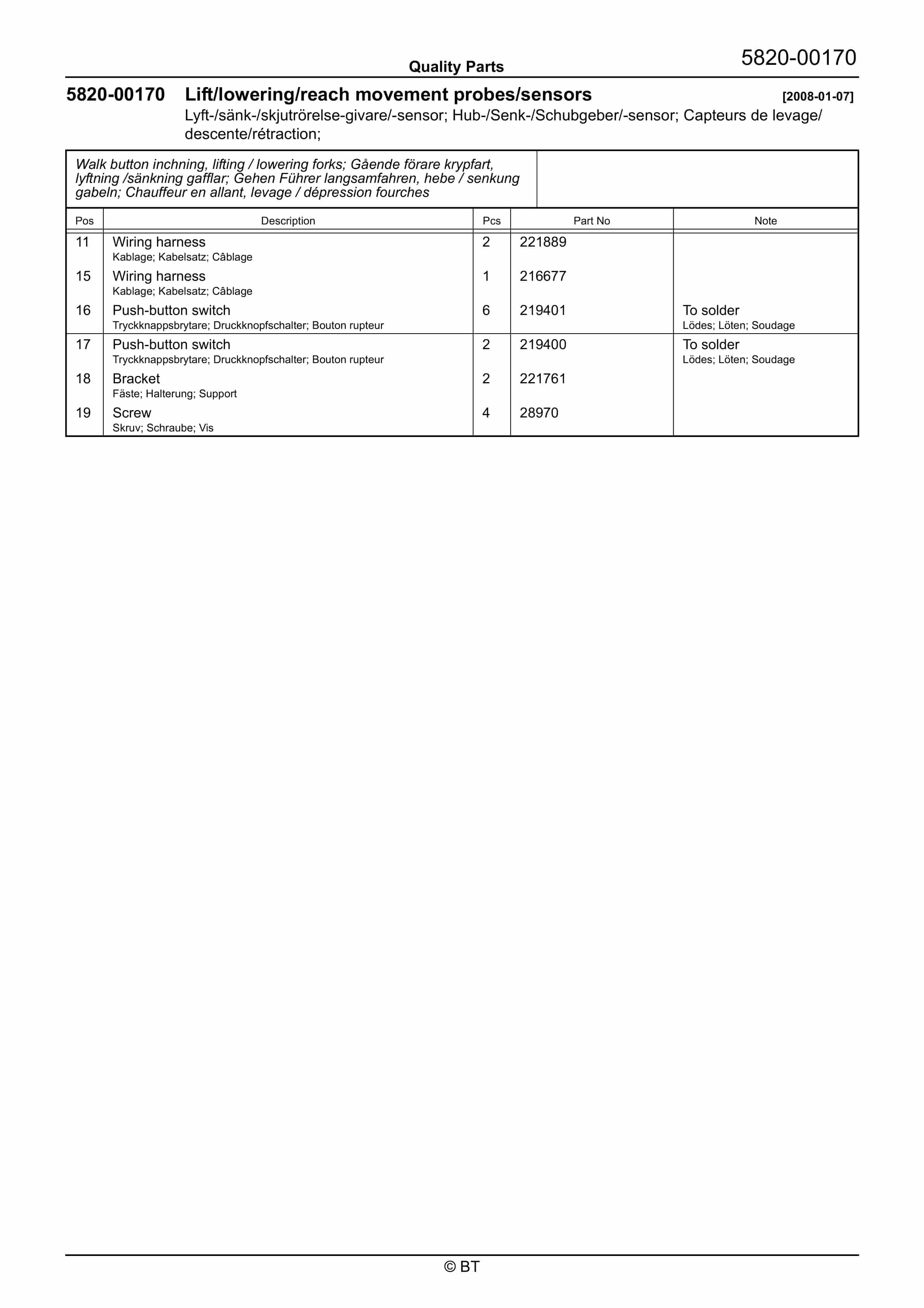 BT BTL2000, BTL2000I, BTL2000K, BTL2000O, BTL2000Q, BTL2000X, BTL2000U, BTL2000QX, Serial 11 Quality Parts 170417