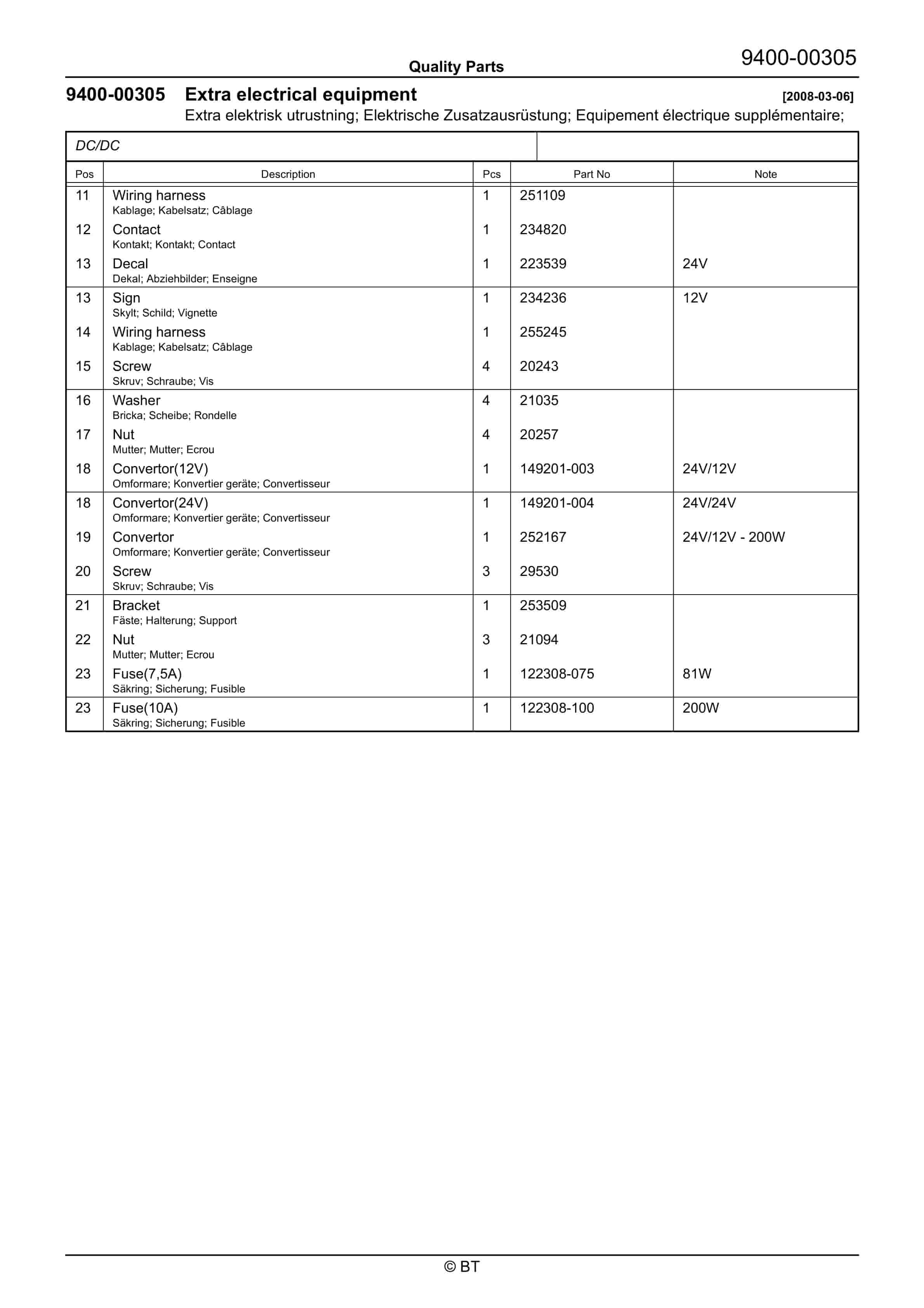 • BT Parts Manual PDF