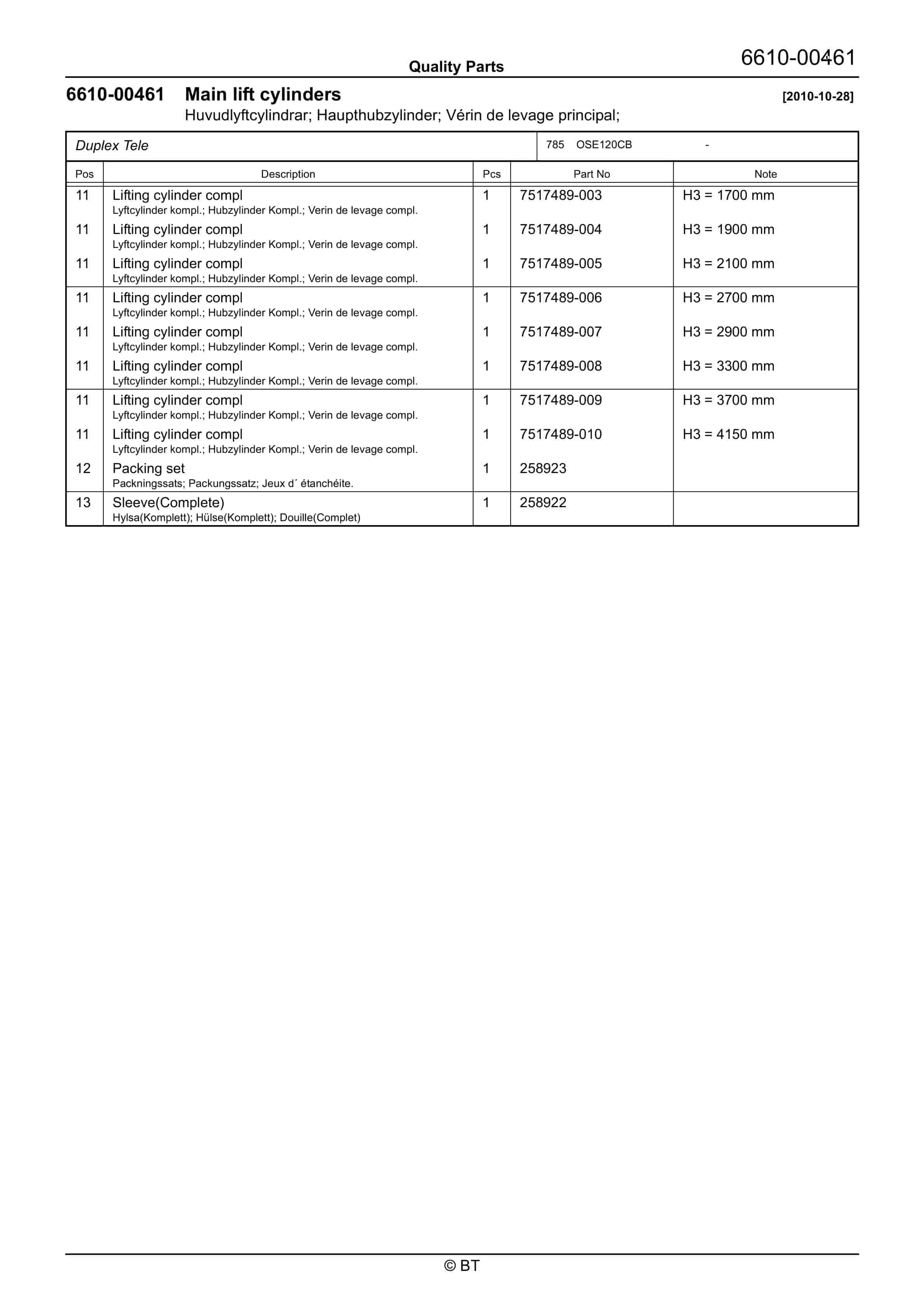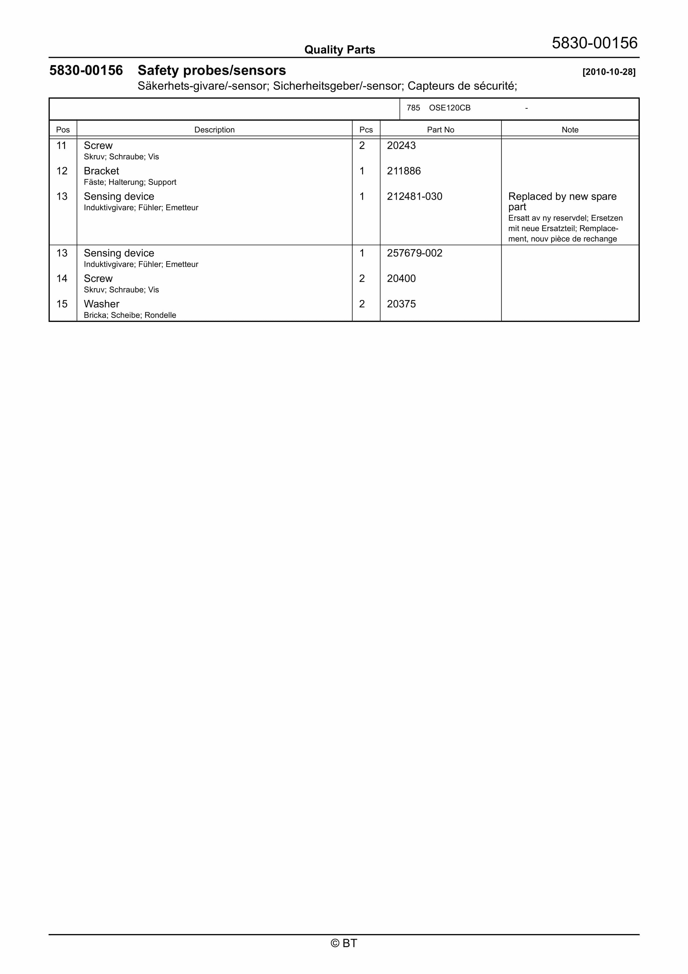 BT BTL20EW, BTL20EWO, BTL30EW, BTL30EWO, L20BR, L20BRO, L30BR, L30BRO Quality Parts 177967