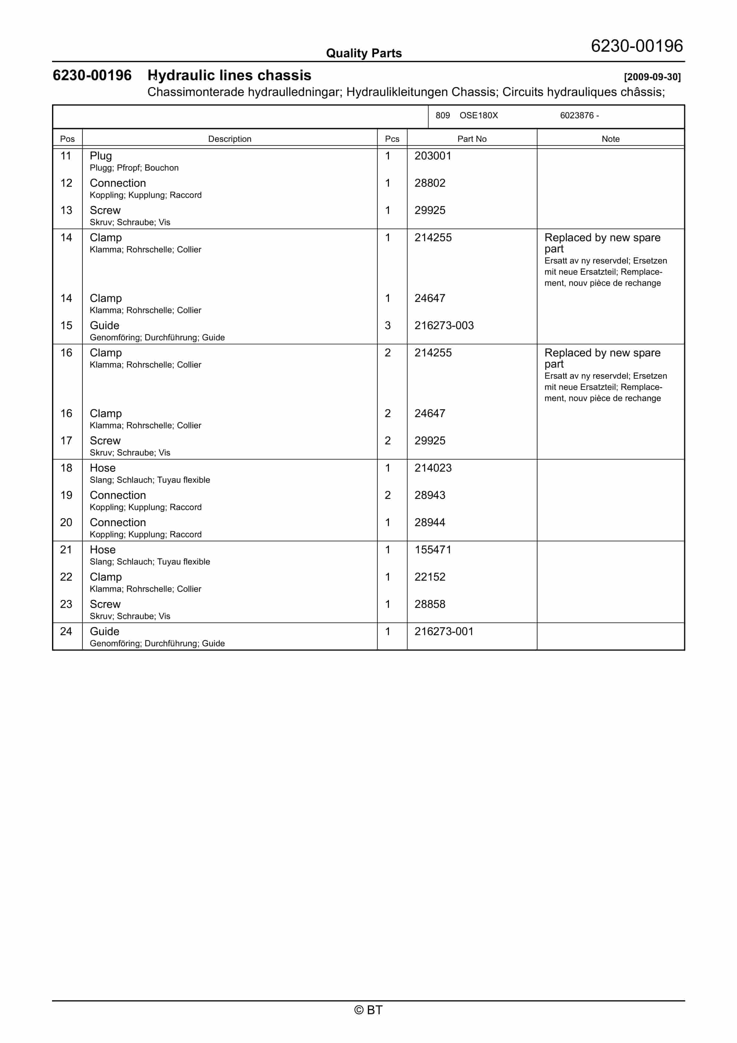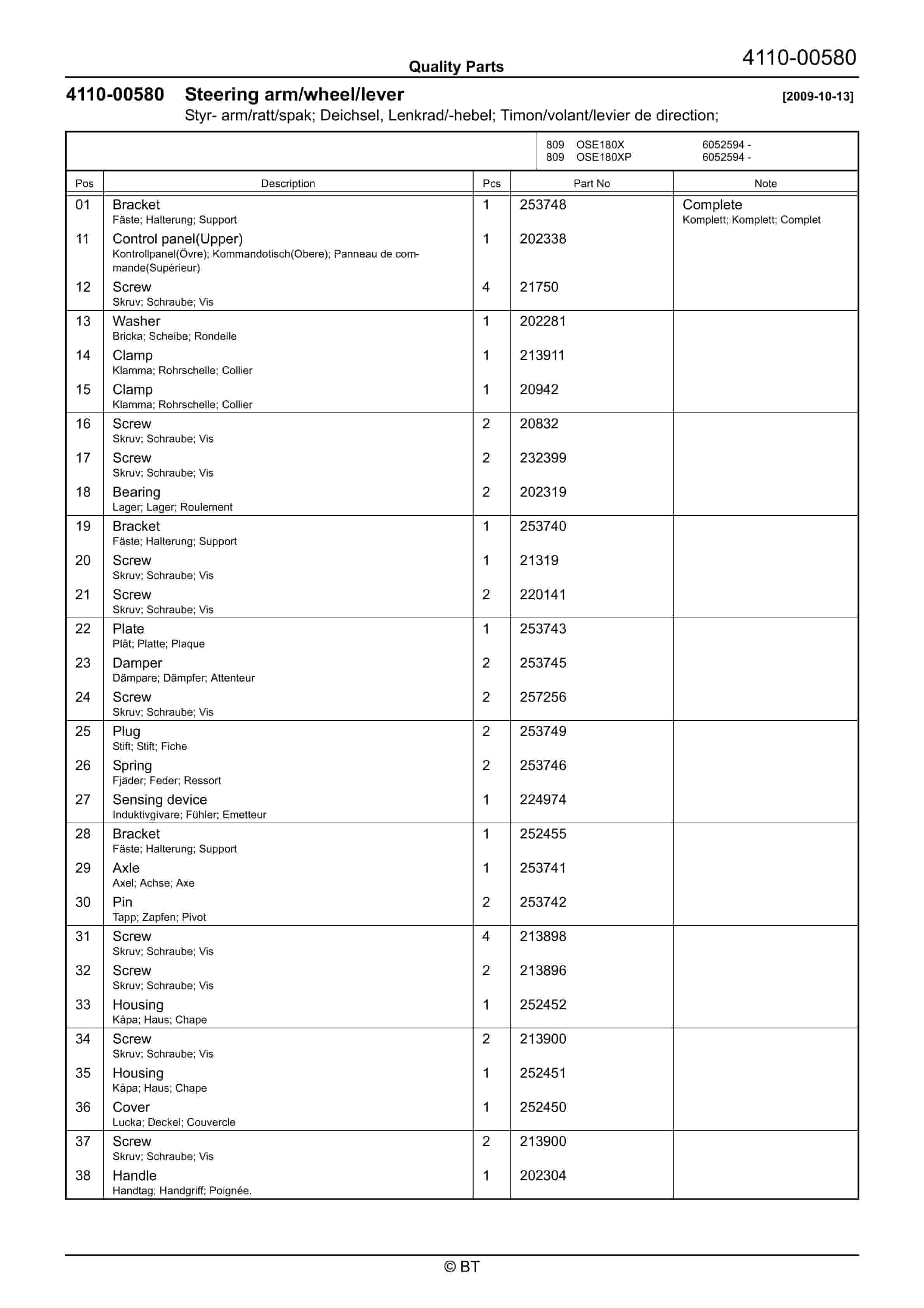BT OSE180X, OSE180XP Quality Parts 7521127