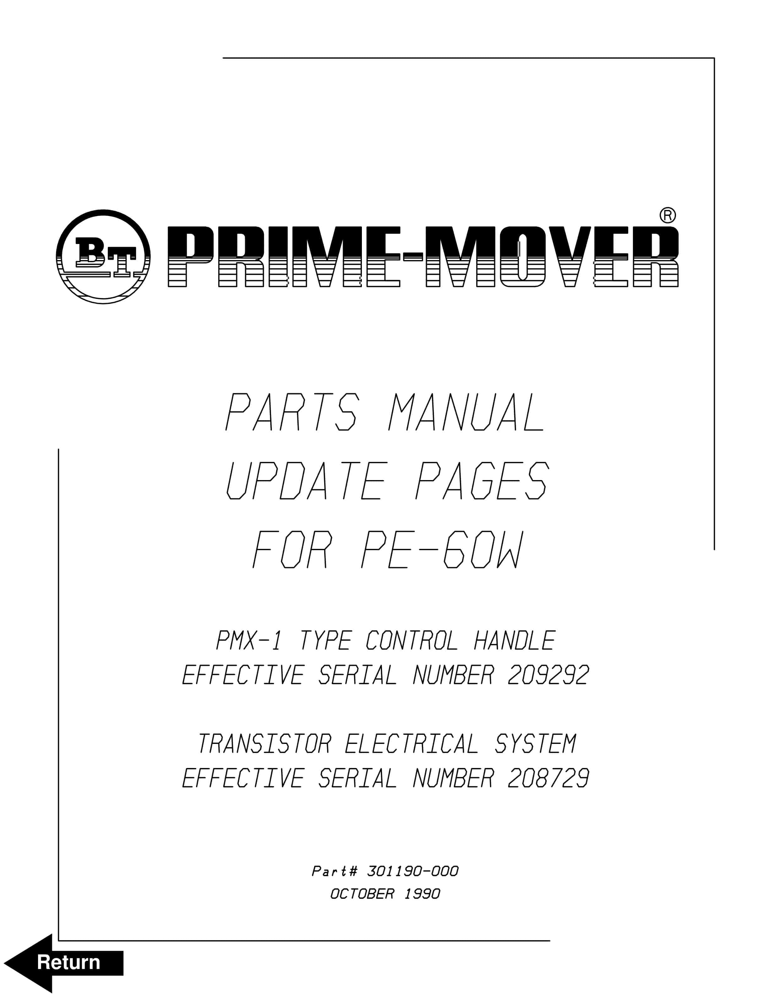 BT PE-60W Update Pages Parts Manual 301190-000-4