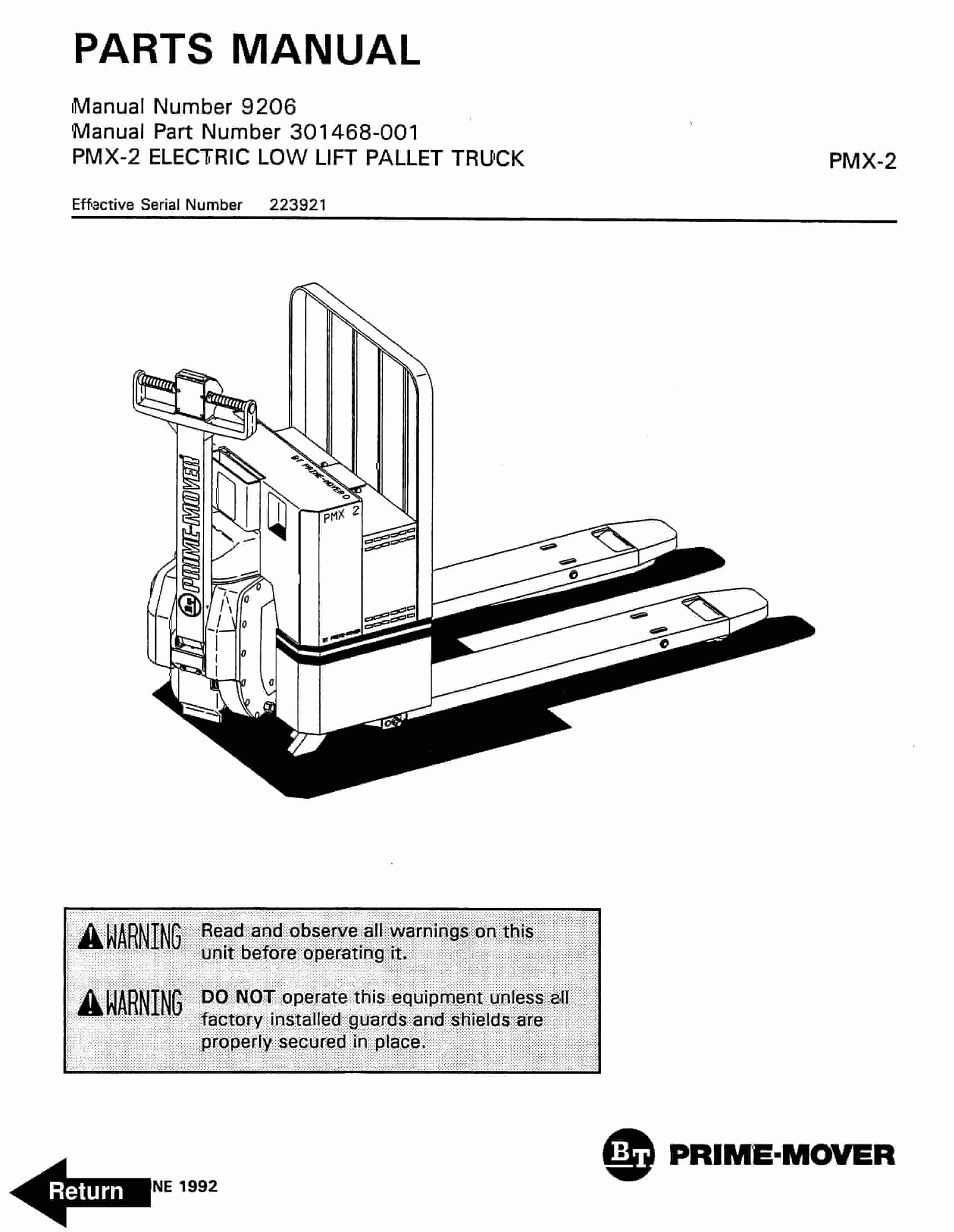 BT PMX-2 Electric Low Lift Pallet Truck Parts Manual 301468-001