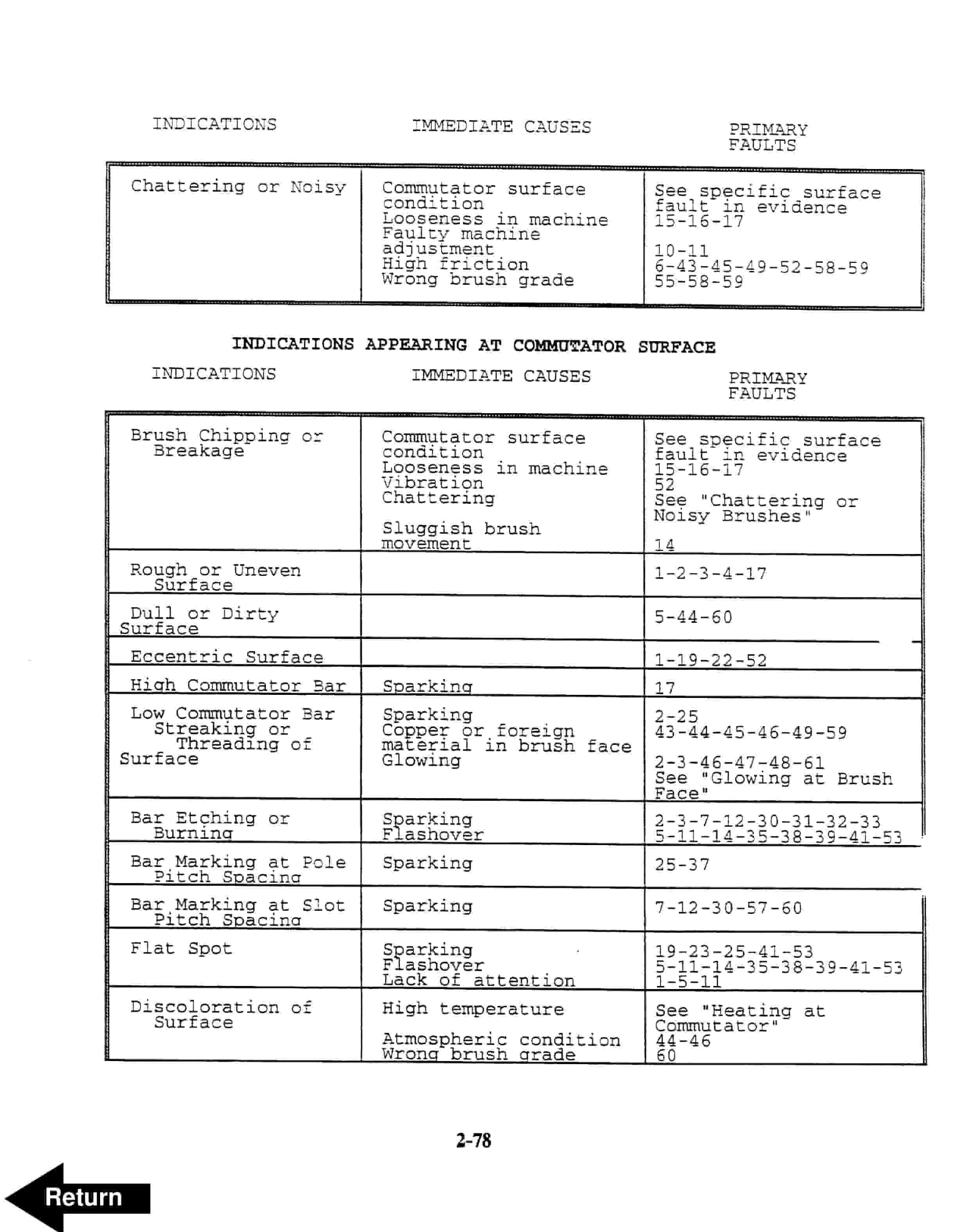- 5.7.1. Table 1 – Indications, Causes and Correction of Unsatisfactory Brush Performance