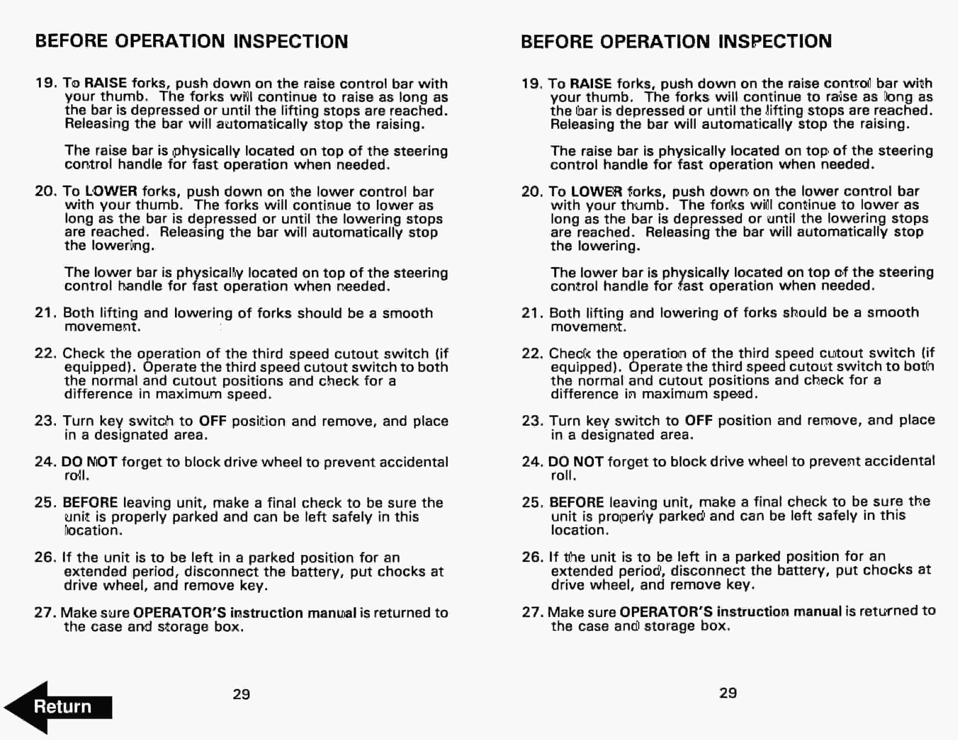 - 9.1.4. When a Powered Industrial Truck is to be Left Unattended