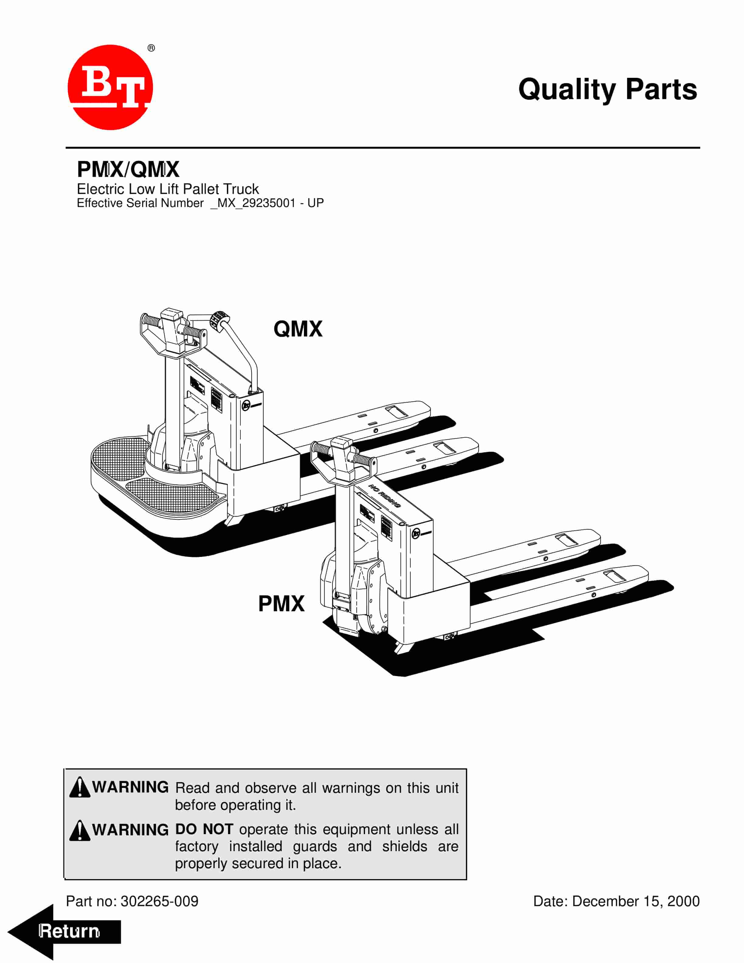 BT PMX, QMX Electric Low Lift Pallet Truck Parts Manual 302265-009