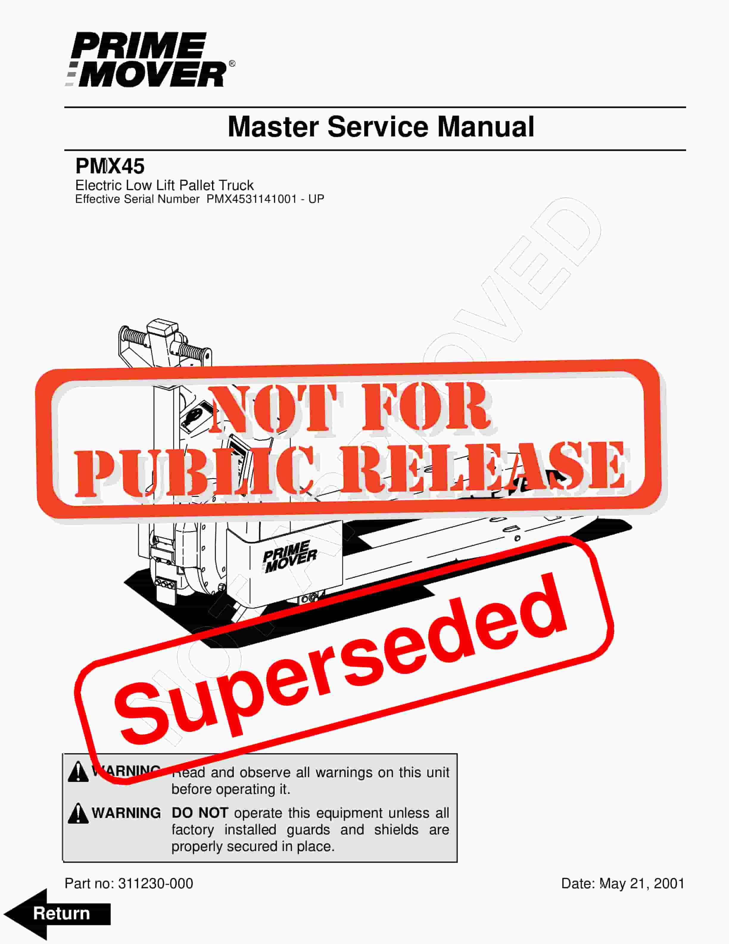 BT PMX45 Electric Low Lift Pallet Truck Service Manual 311229-000