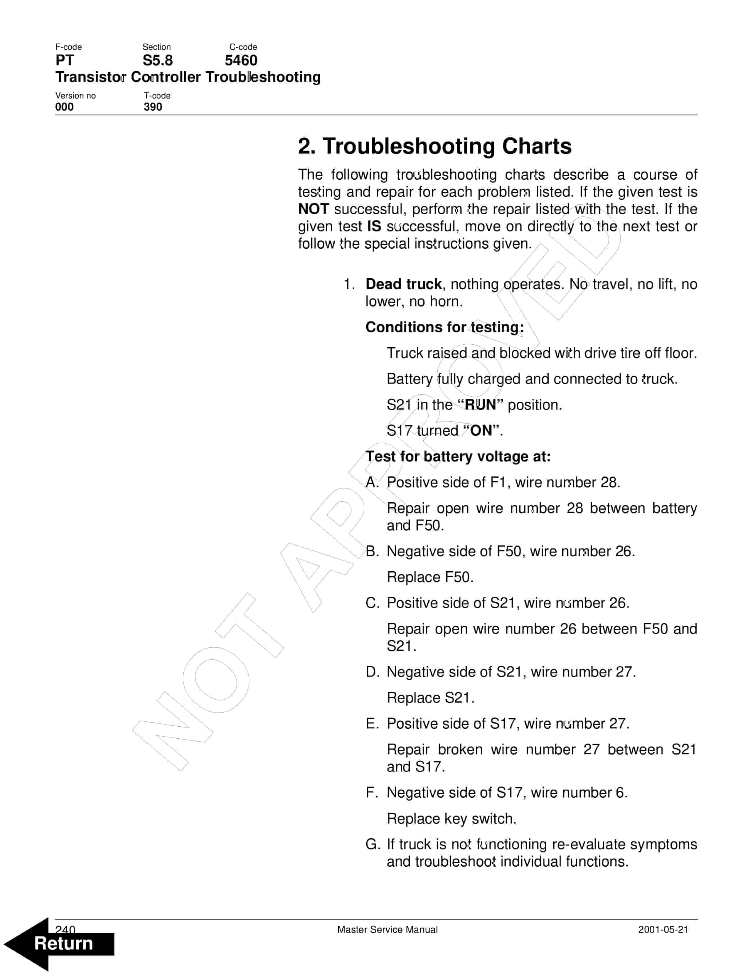 - 40.3.8. Reversing/Motor Brake Steer Wheel Direction to Fork Direction