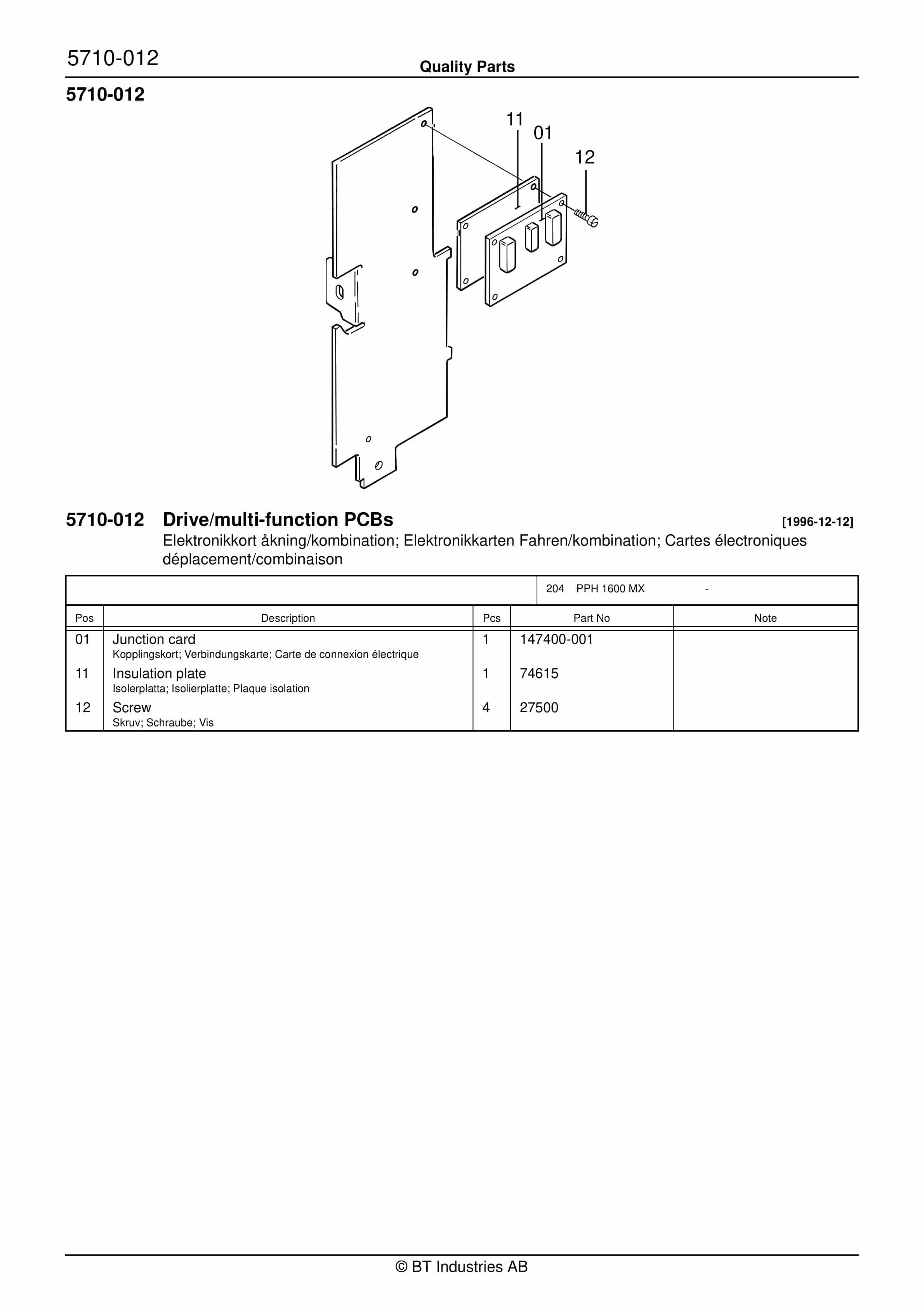 BT BTL20EW, BTL20EWO, BTL30EW, BTL30EWO, L20BR, L20BRO, L30BR, L30BRO Quality Parts 177967