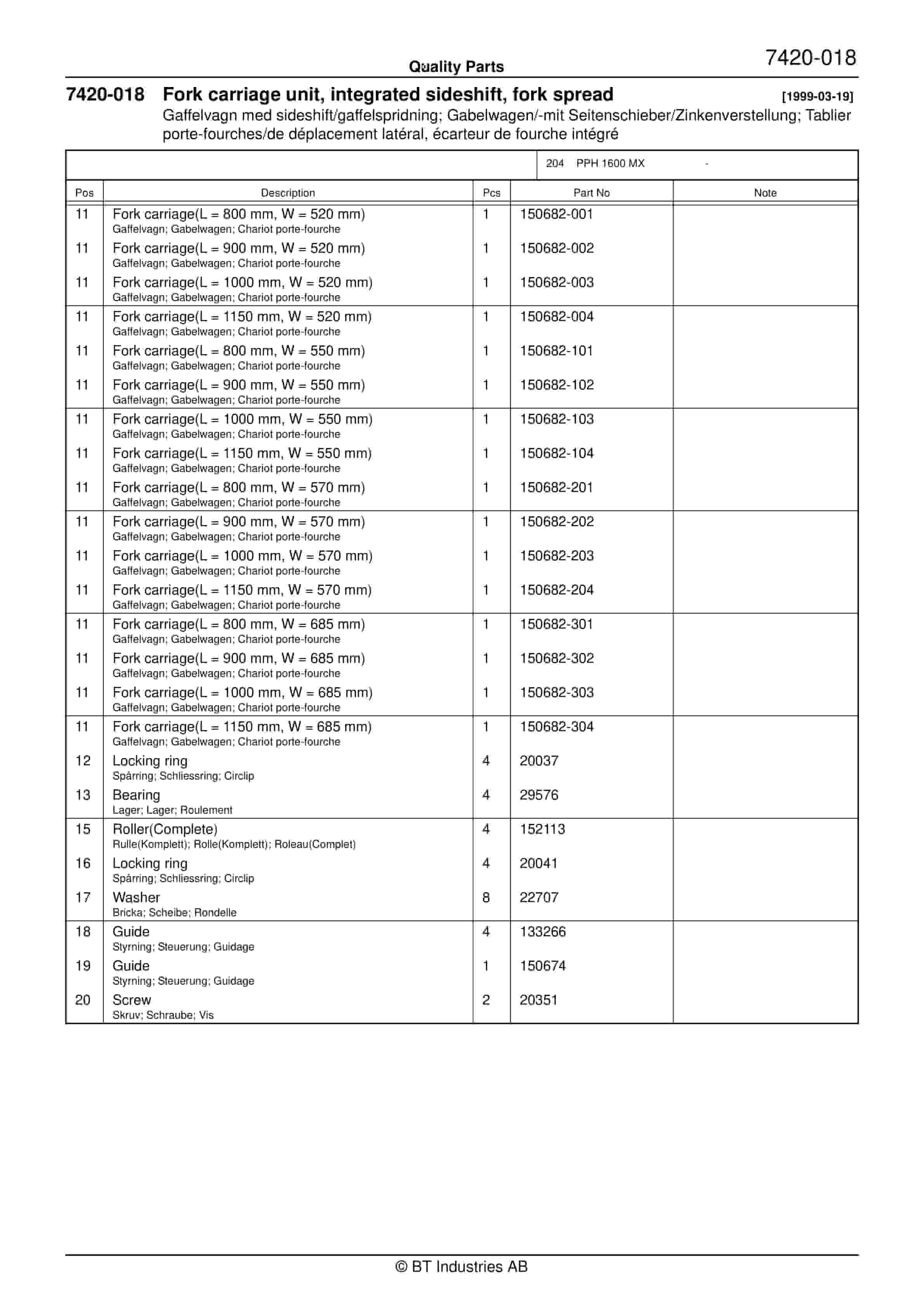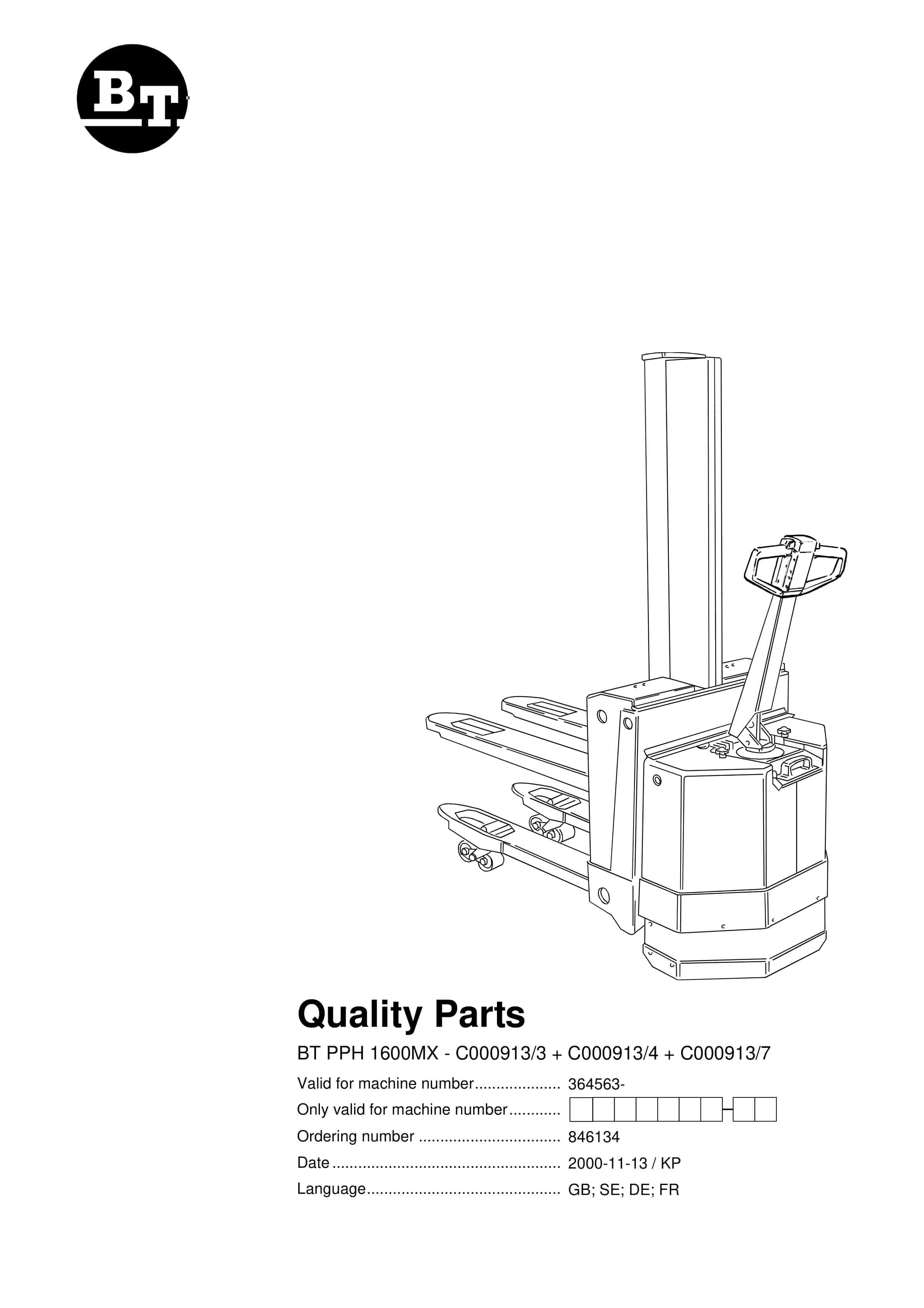 BT BTL2000, BTL2000I, BTL2000K, BTL2000O, BTL2000Q, BTL2000X, BTL2000U, BTL2000QX, Serial 11 Quality Parts 170417