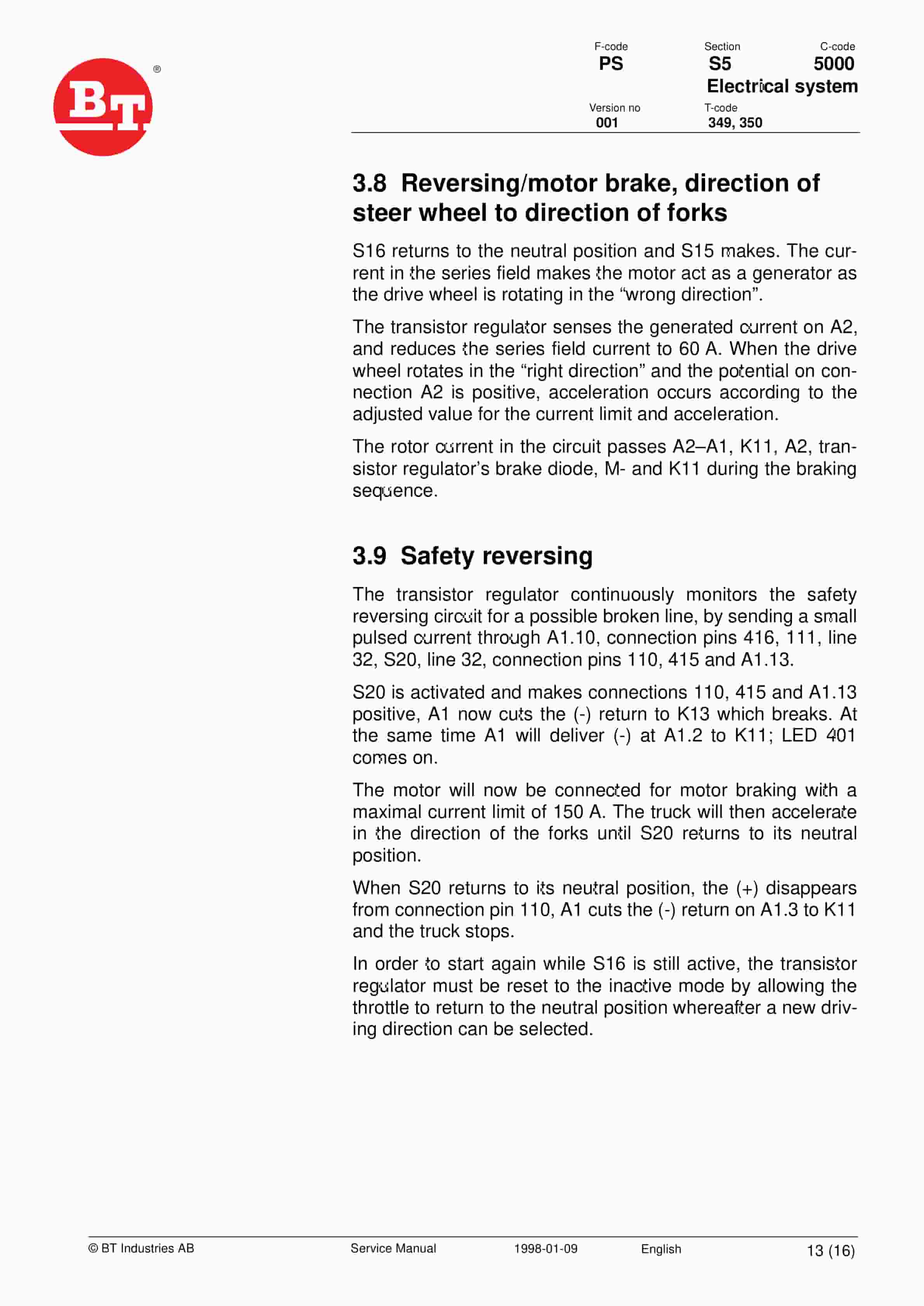 - 26.3.7. Reversing/motor brake, fork direction to steer wheel direction
