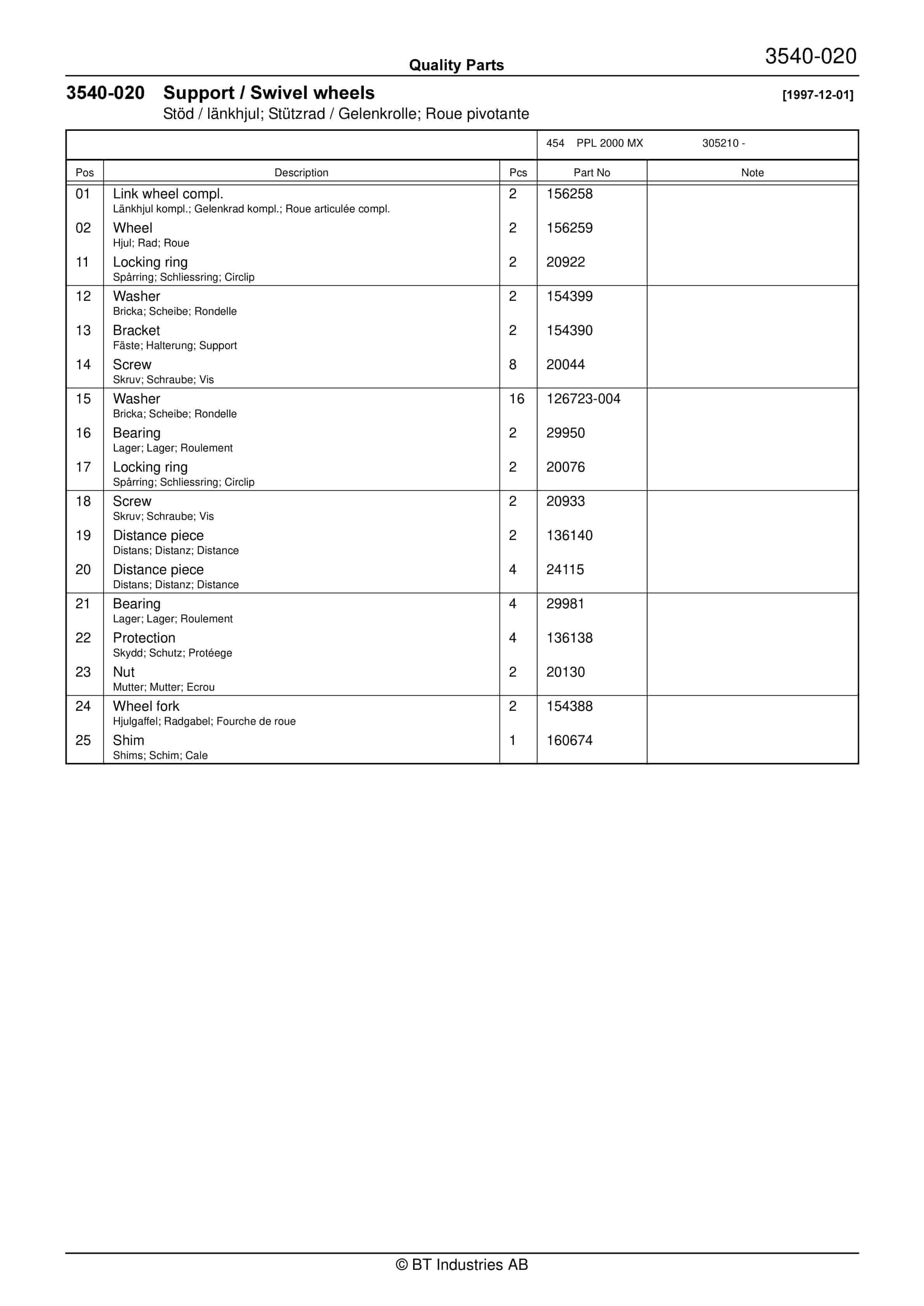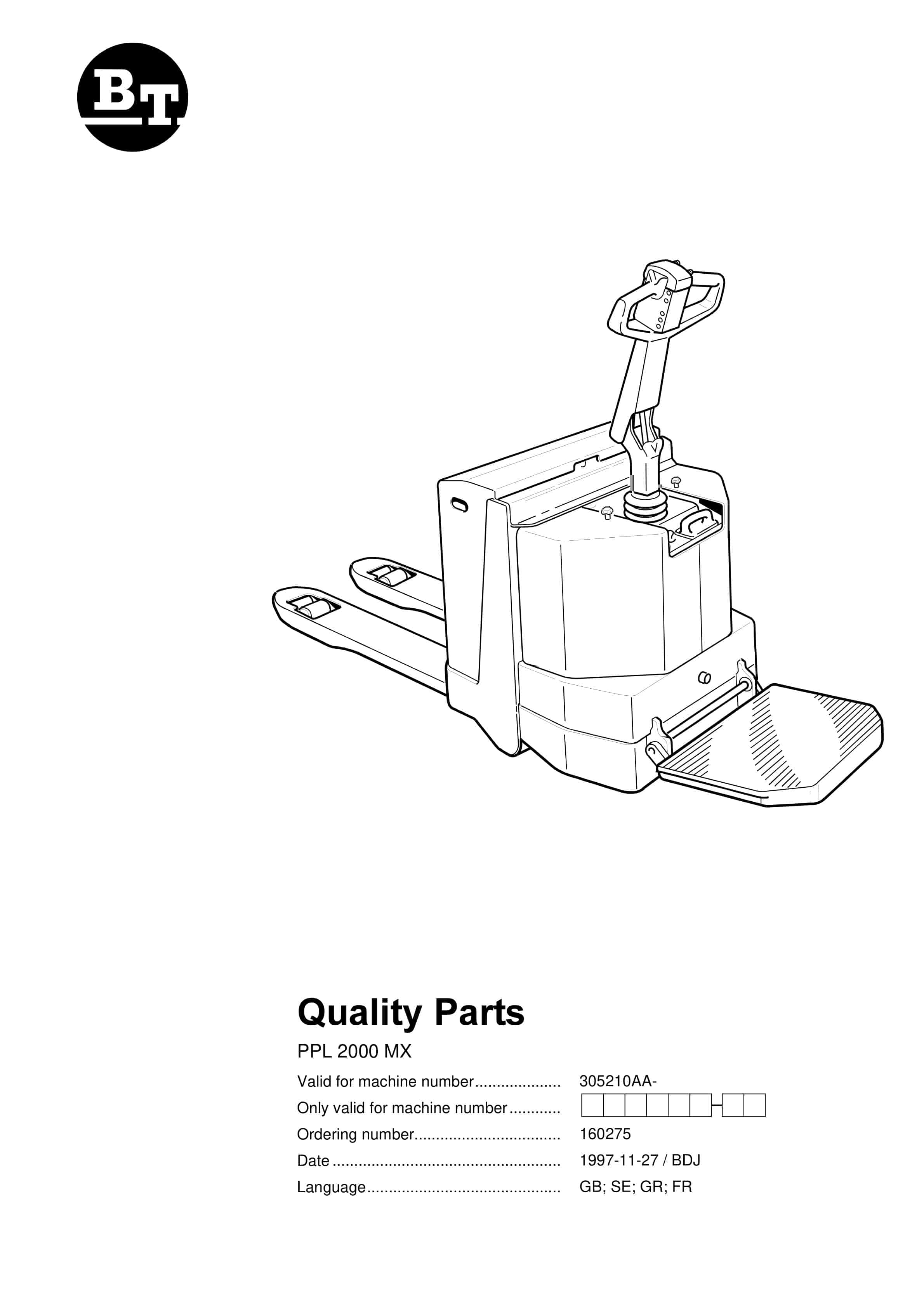 BT PPL 2000 MX Quality Parts 160275