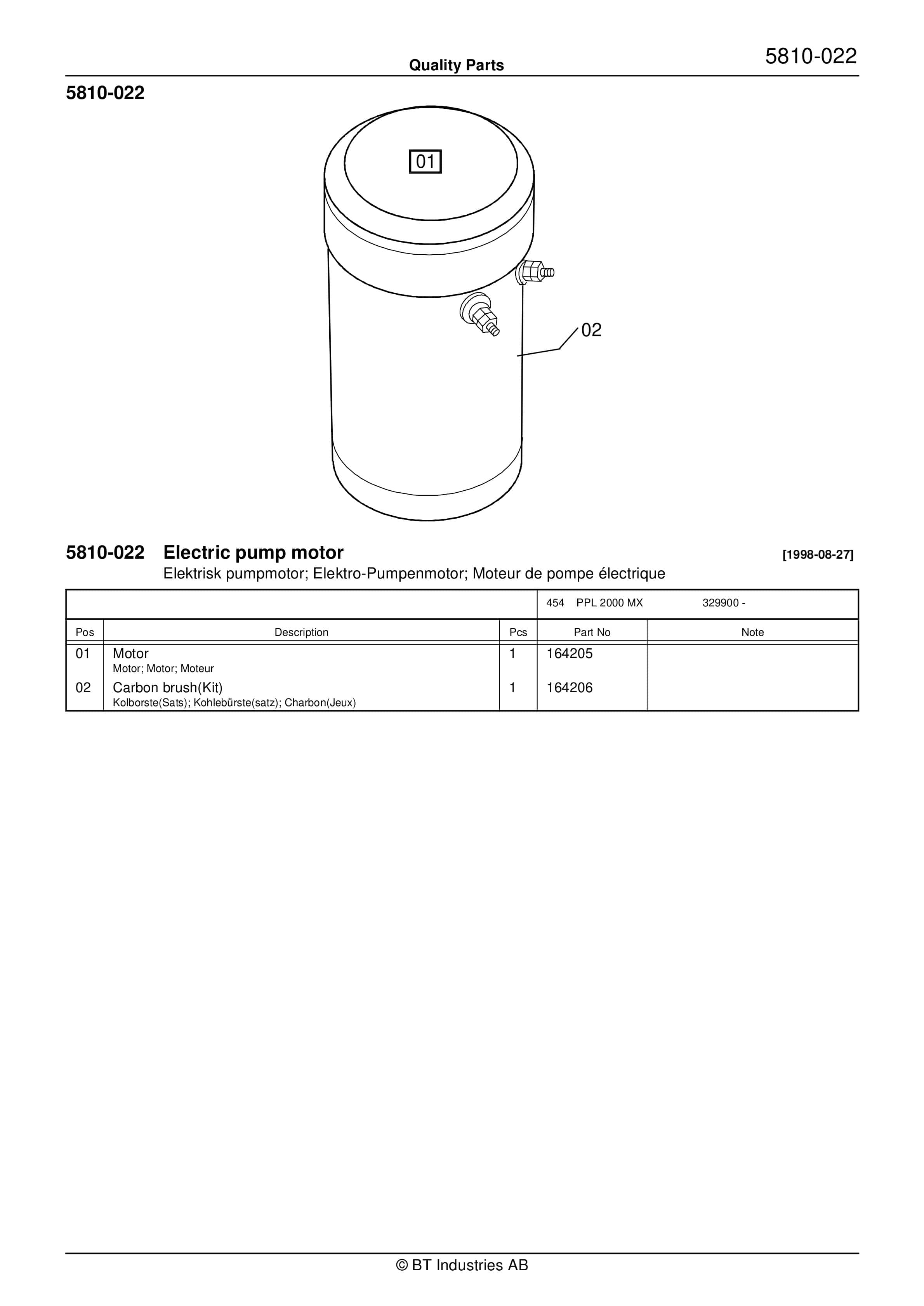 BT PPL 2000 MX Quality Parts 168585